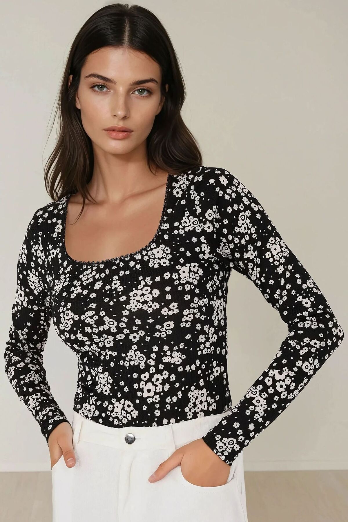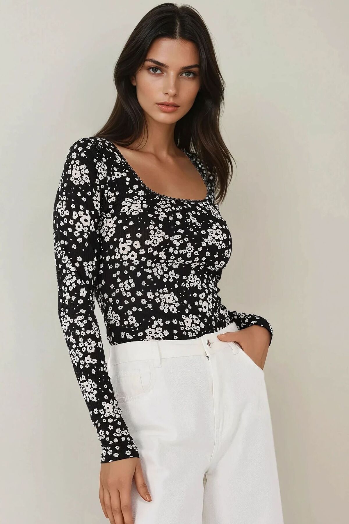 Çiçek Desenli Slim Fit Yaka Detaylı Üst Çiçek Desenli Slim Fit Yaka Detaylı Üst M6YRXLBA XL