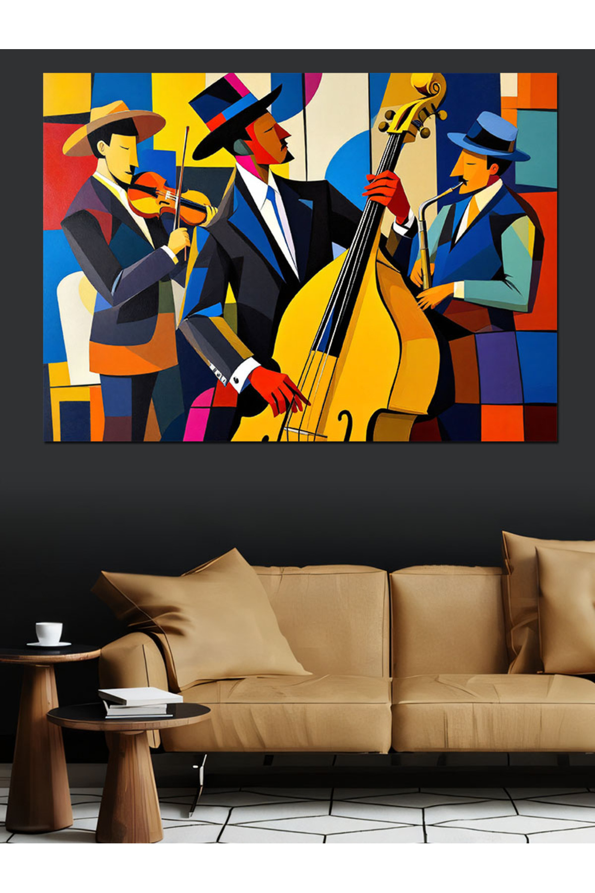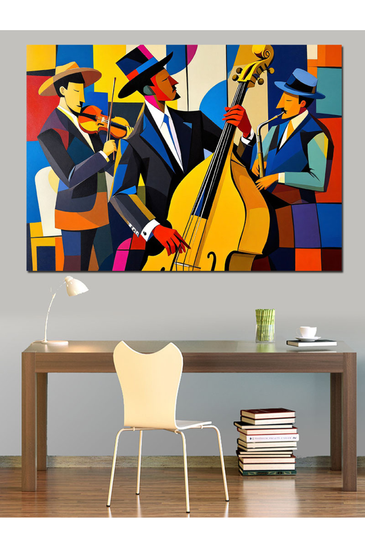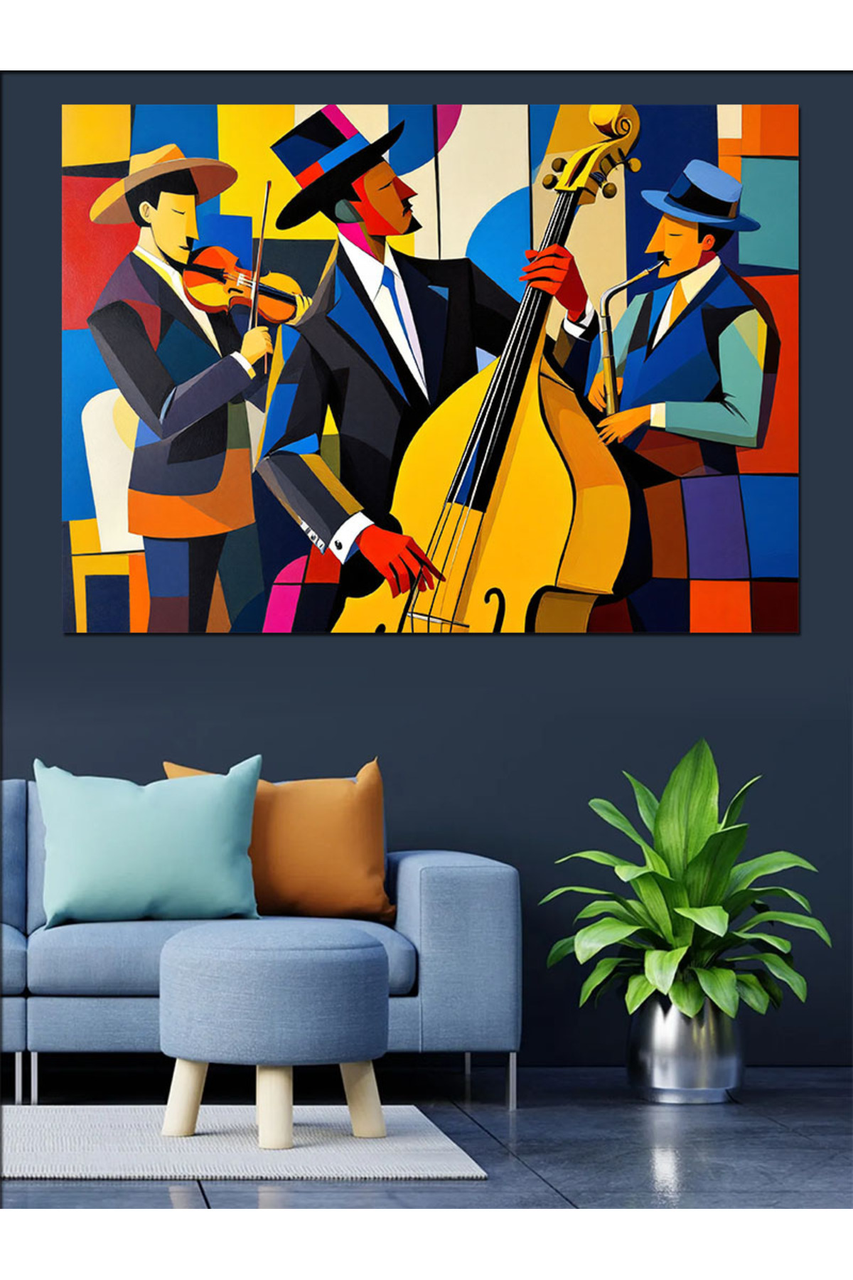 Caz Grubu Renkli Çizim Dekoratif Tablo Caz Grubu Renkli Çizim Dekoratif Tablo YTCNVS508540 100 x 140