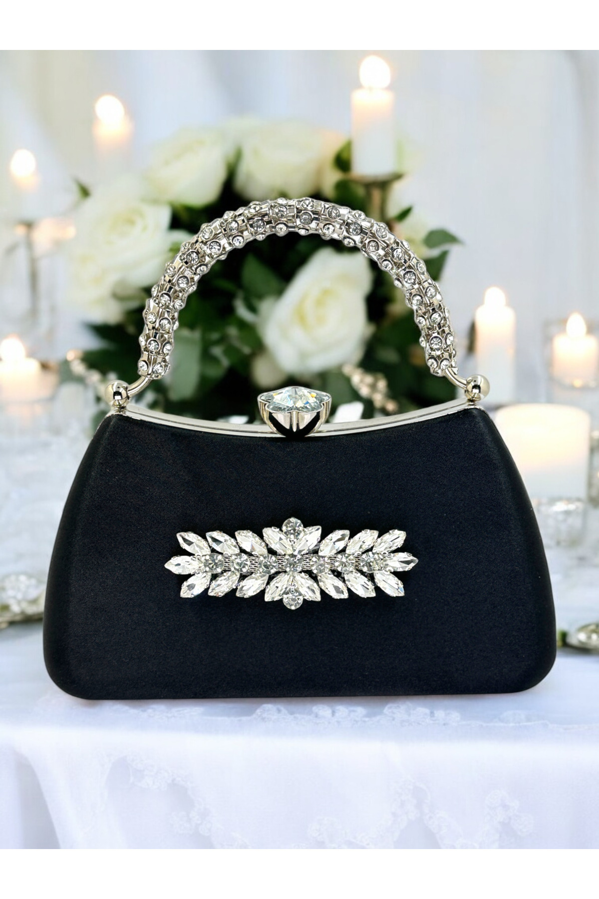 Özel Tasarım Siyah Renk Saten Gümüş Kristal Taşlı Saplı Kulplu Kadın Abiye Çanta Özel Tasarım Siyah Renk Saten Gümüş Kristal Taşlı Saplı Kulplu Kadın Abiye Çanta 220-S Saten Taşlı تک سایز
