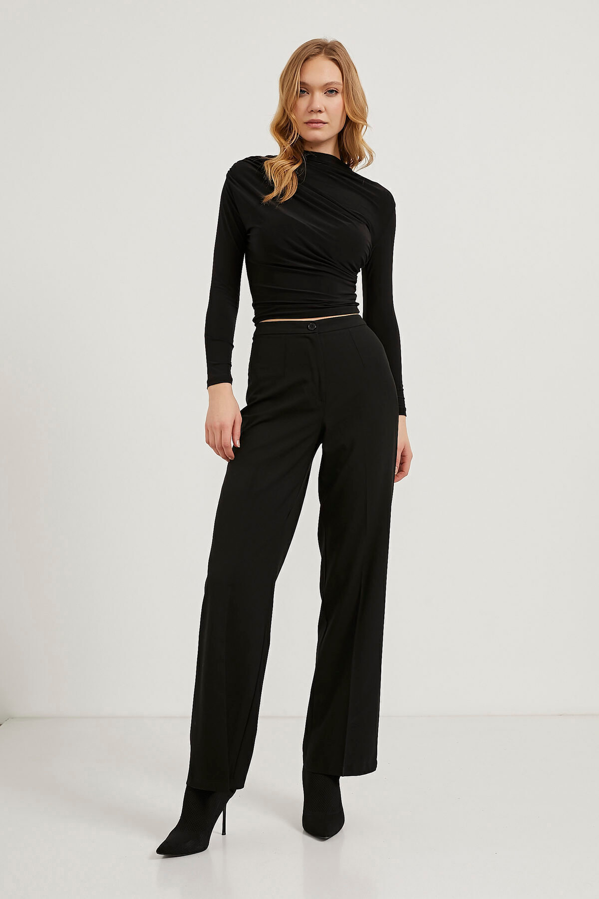 Kadın Beli Lastik Rahat Kalıp Siyah Havuç Pantolon Kadın Beli Lastik Rahat Kalıp Siyah Havuç Pantolon 463-5YB5812PTL XL