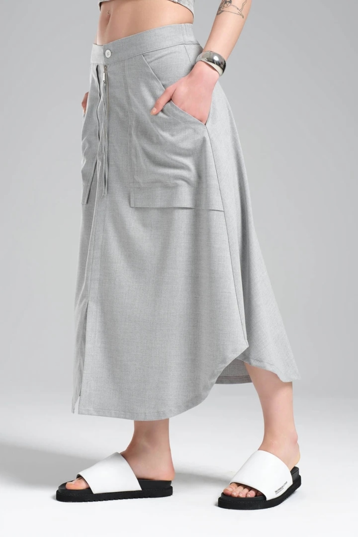 Kadın Cepli ve Fermuar Detaylı Tasarım Çan Etek Kadın Cepli ve Fermuar Detaylı Tasarım Çan Etek TW3-1277 L
