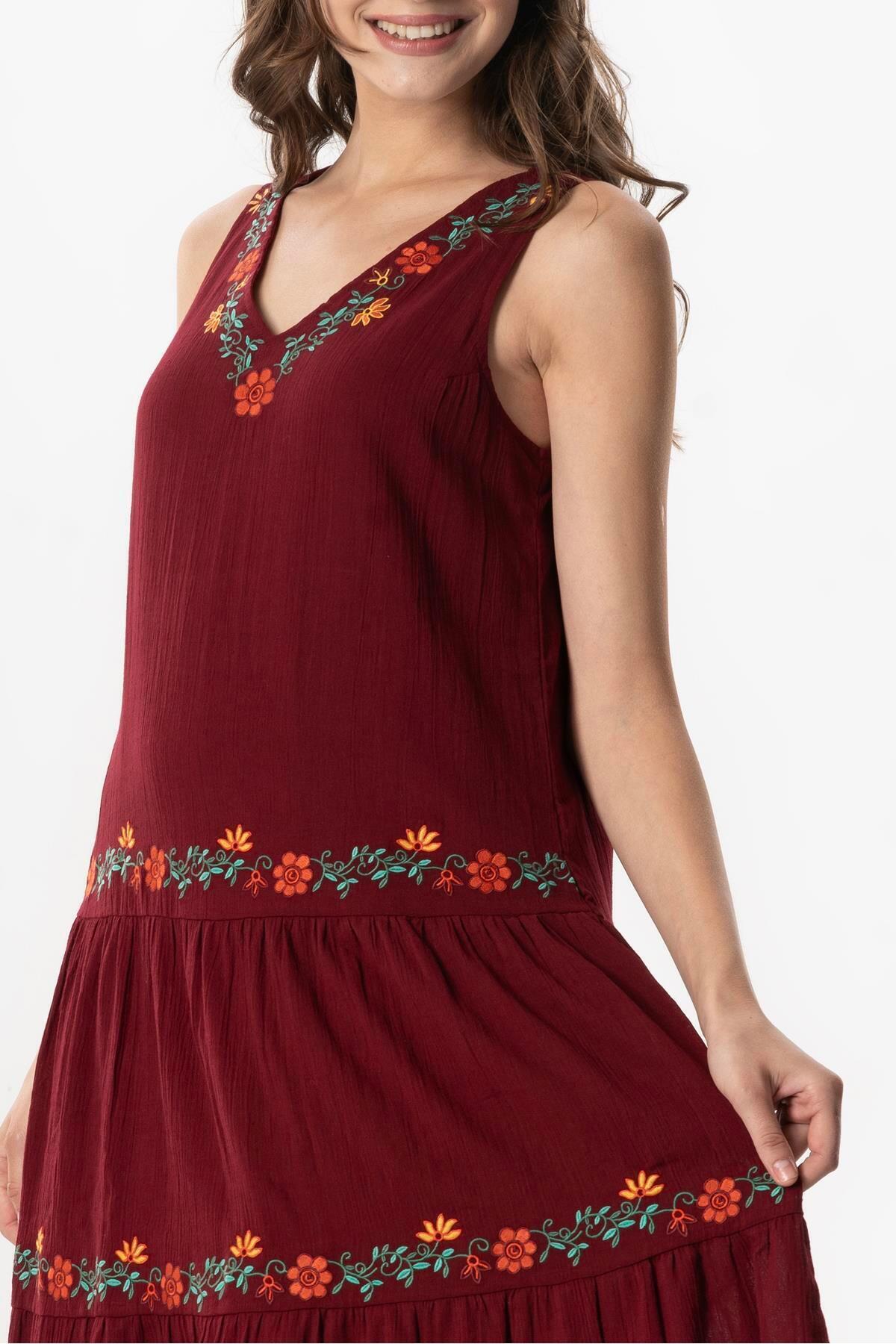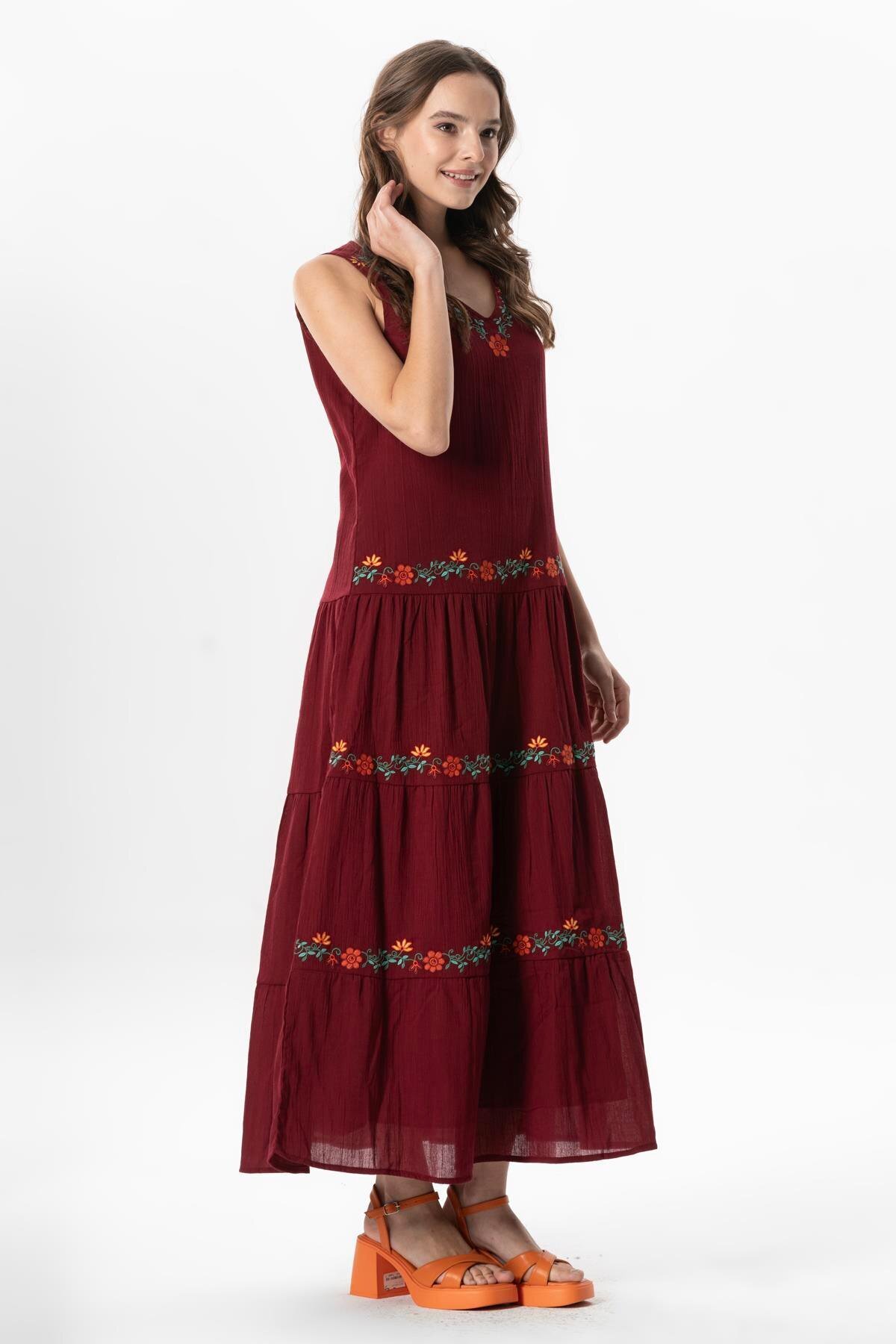 Kolsuz Şile Bezi Bahar V Yaka Nakışlı Uzun Yazlık Elbise Bordo Brd Kolsuz Şile Bezi Bahar V Yaka Nakışlı Uzun Yazlık Elbise Bordo Brd 223.32 2XL-3XL