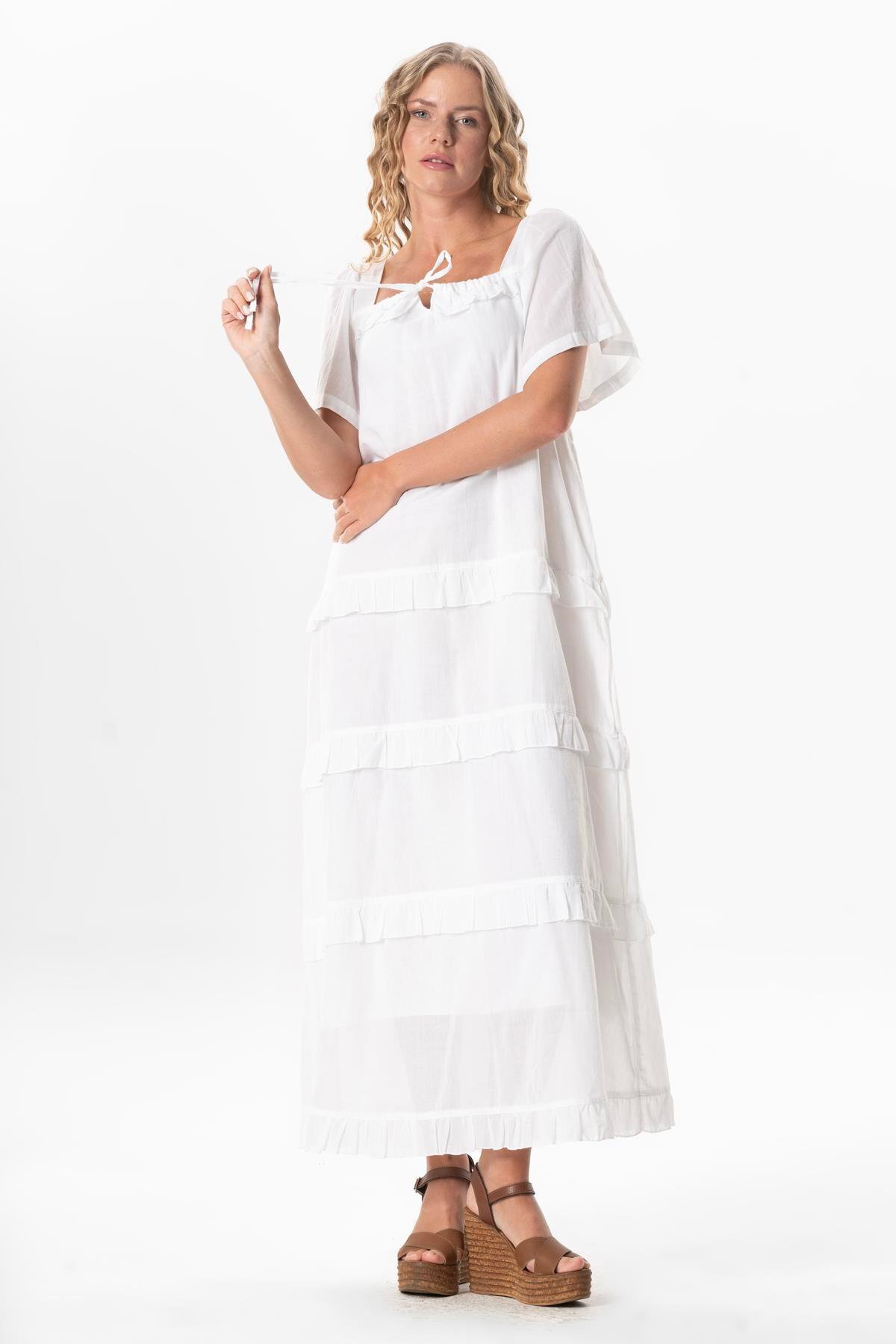 Kısa Kol Vual Leman Kare Yaka Uzun Yazlık Elbise Beyaz Byz Kısa Kol Vual Leman Kare Yaka Uzun Yazlık Elbise Beyaz Byz 721.25 2XL-3XL
