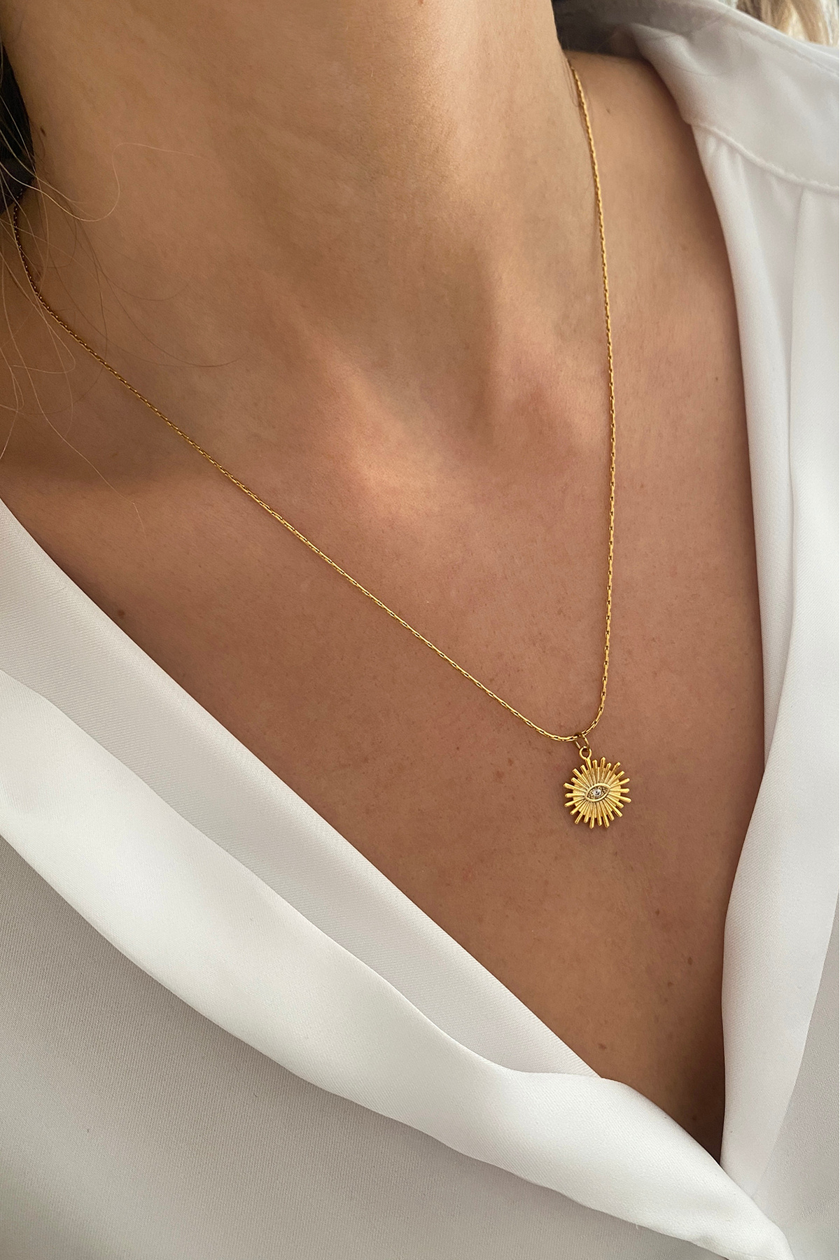 Çelik 1mm İnce Gold Hayalet Zincir Zirkon Taşlı Güneş Kolye Çelik 1mm İnce Gold Hayalet Zincir Zirkon Taşlı Güneş Kolye B0NJ-0025848 تک سایز