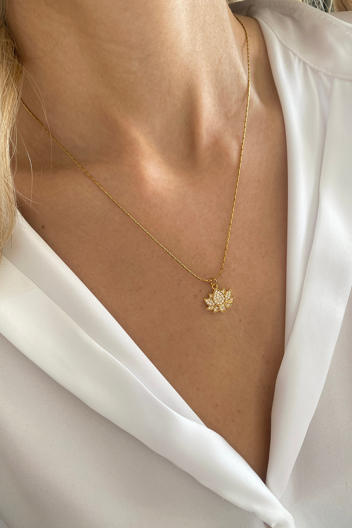 Çelik 1mm İnce Gold Hayalet Zincir Zirkon Taşlı Lotus Çiçeği Kolye Çelik 1mm İnce Gold Hayalet Zincir Zirkon Taşlı Lotus Çiçeği Kolye B0NJ-0025857 تک سایز