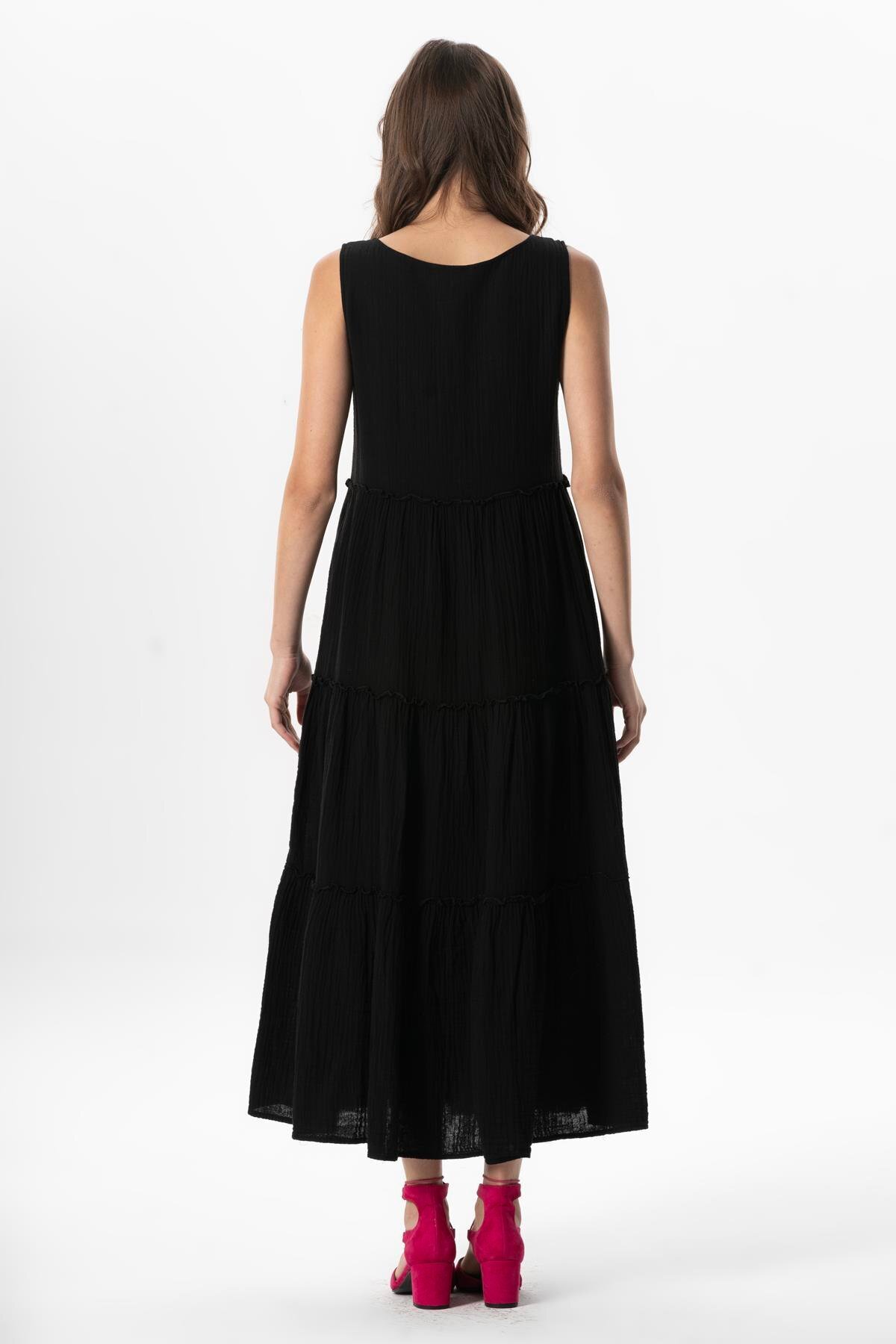 Kolsuz Artemis Oval Yaka Yıldız Baskılı Midi Boy Müslin Yazlık Elbise Siyah Syh Kolsuz Artemis Oval Yaka Yıldız Baskılı Midi Boy Müslin Yazlık Elbise Siyah Syh 523.08 XL