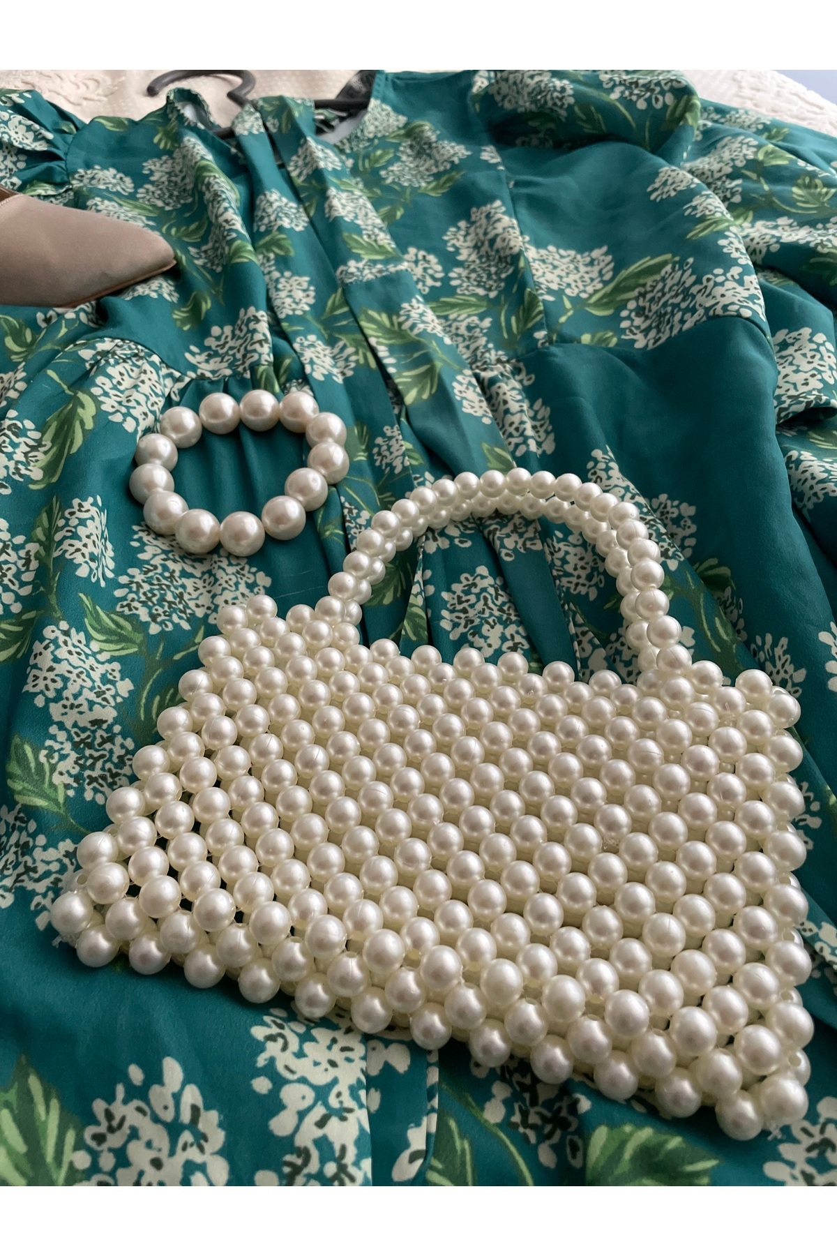 Krem İncili El Çantası Krem İncili El Çantası 905 تک سایز
