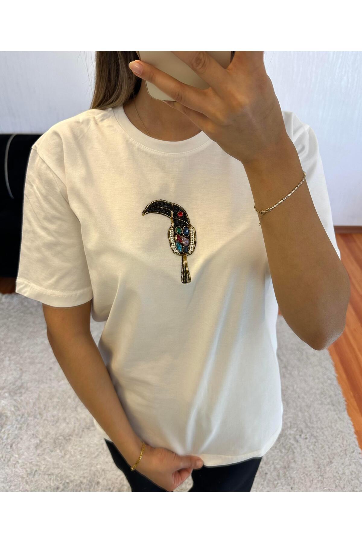 Marka Muadil Kaz Mec Zincir Taşlı T-Shirt Kırık Beyaz Marka Muadil Kaz Mec Zincir Taşlı T-Shirt Kırık Beyaz ST0232 XL