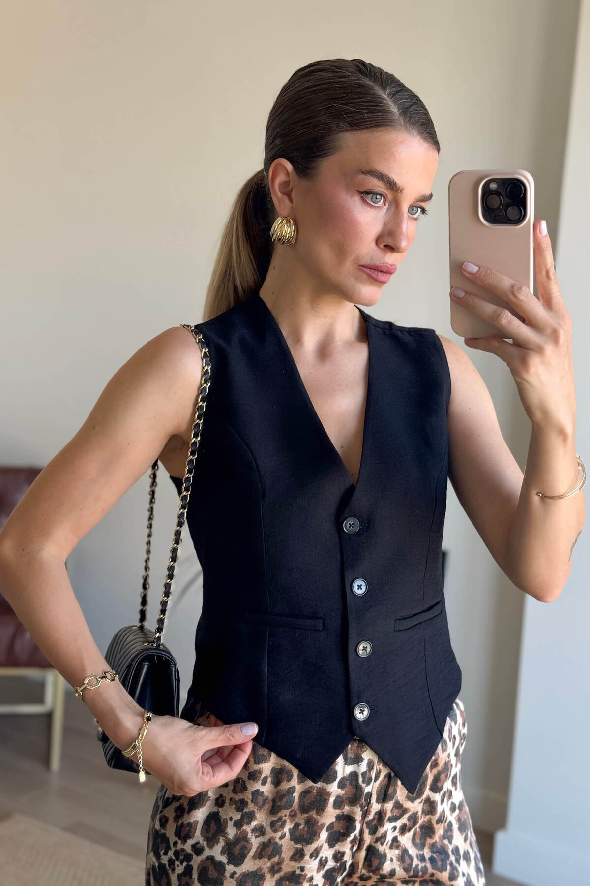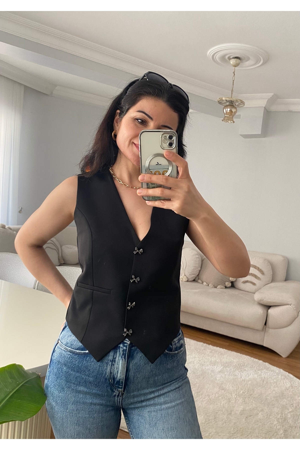 Kadın Siyah V Yaka Astarlı Vücuda Oturan Yelek TL-100060064 Kadın Siyah V Yaka Astarlı Vücuda Oturan Yelek TL-100060064 L