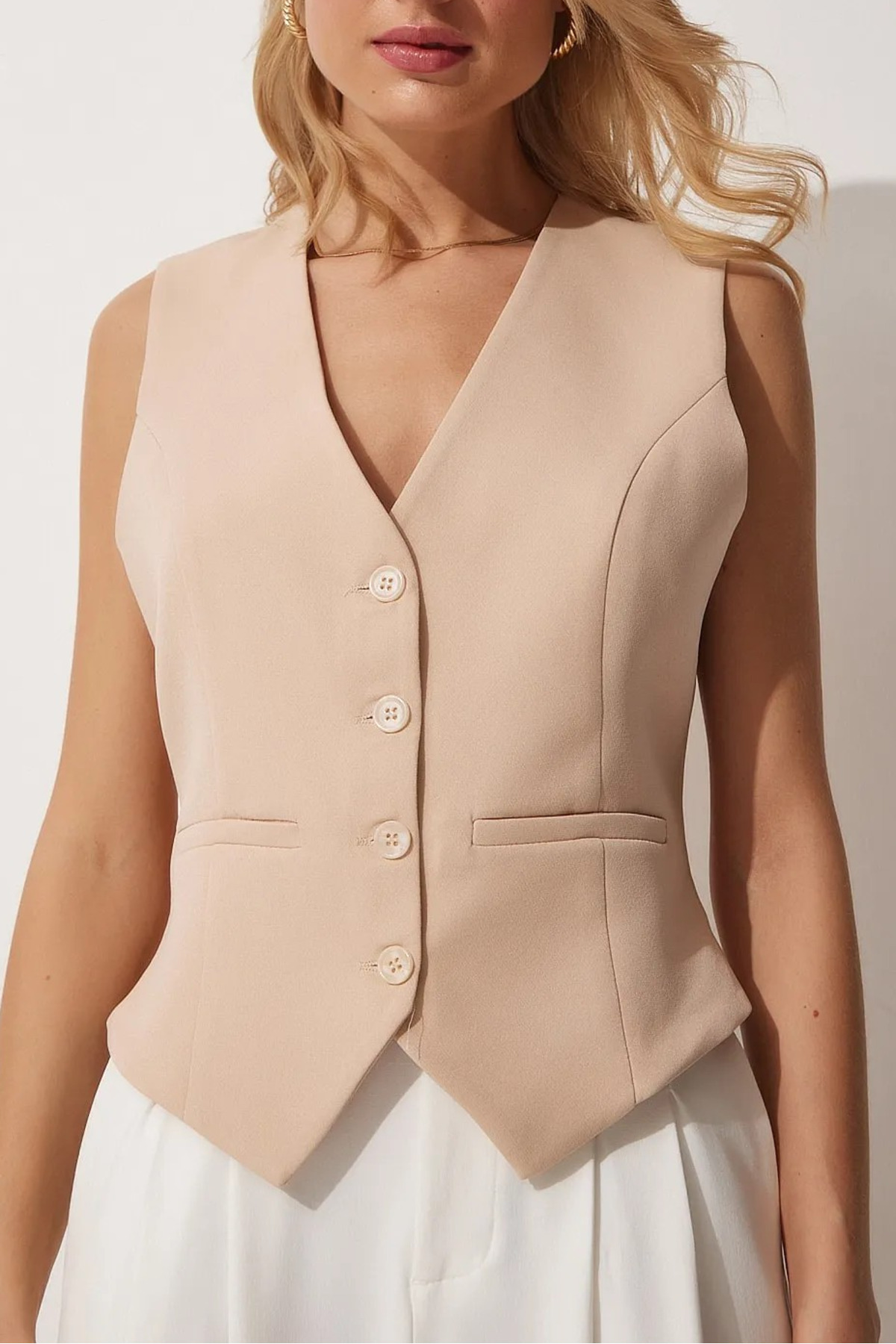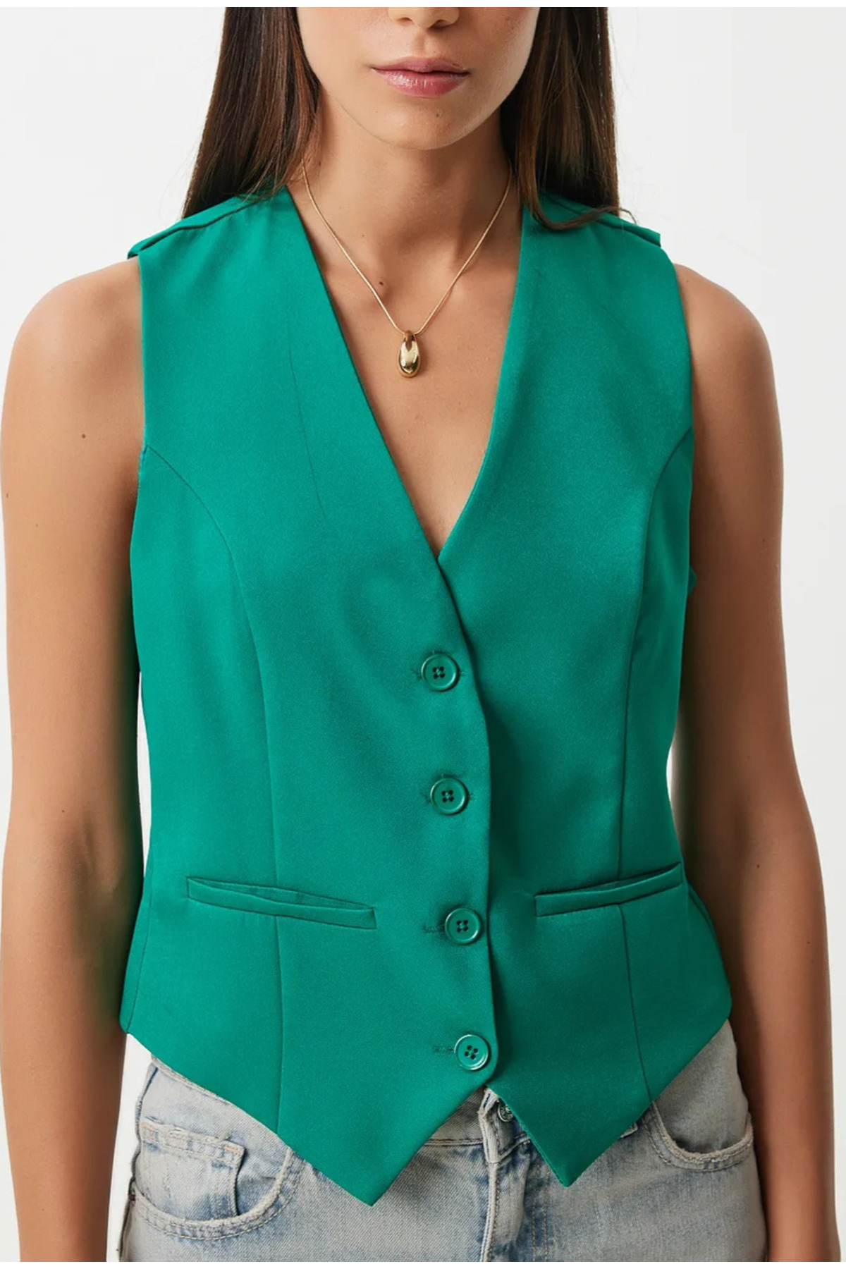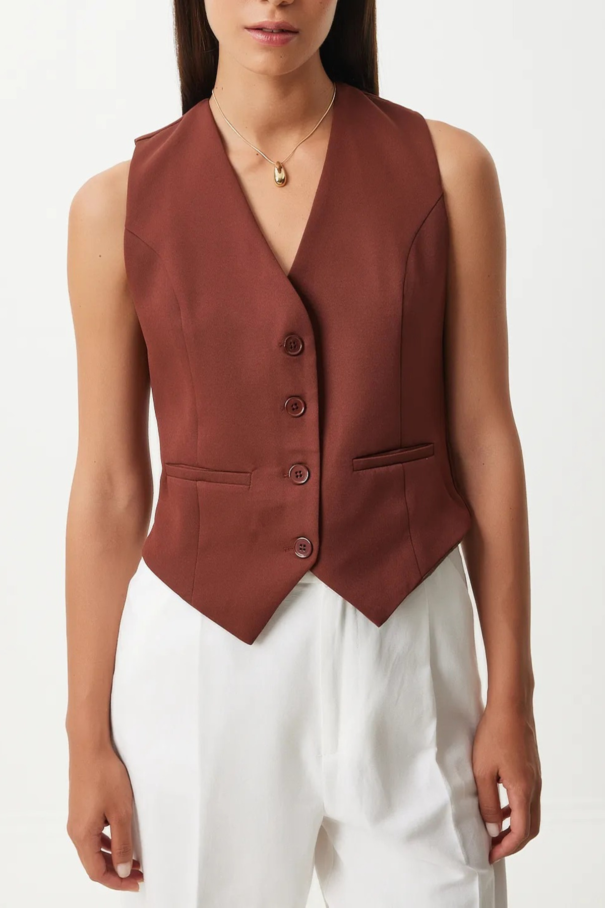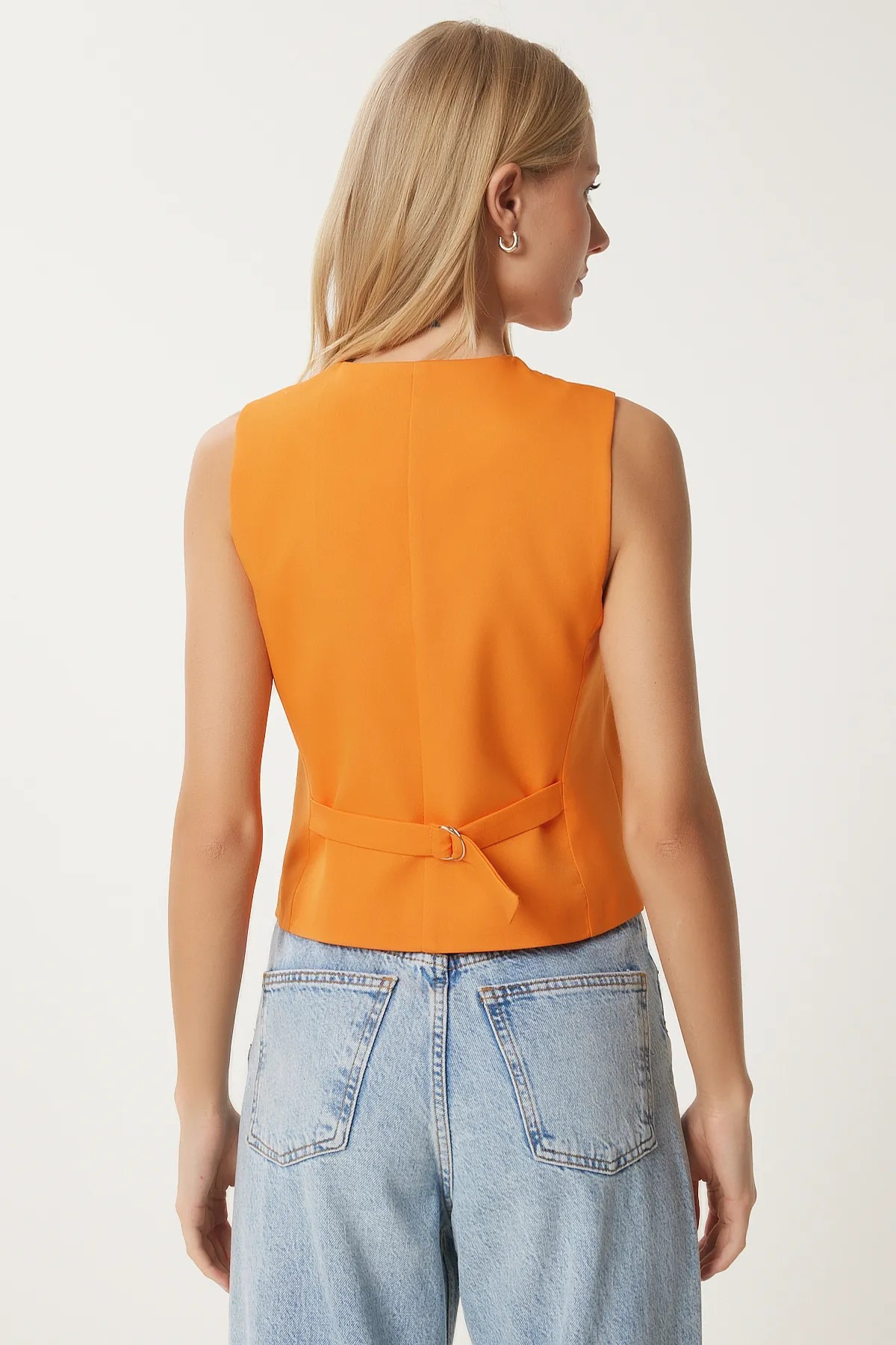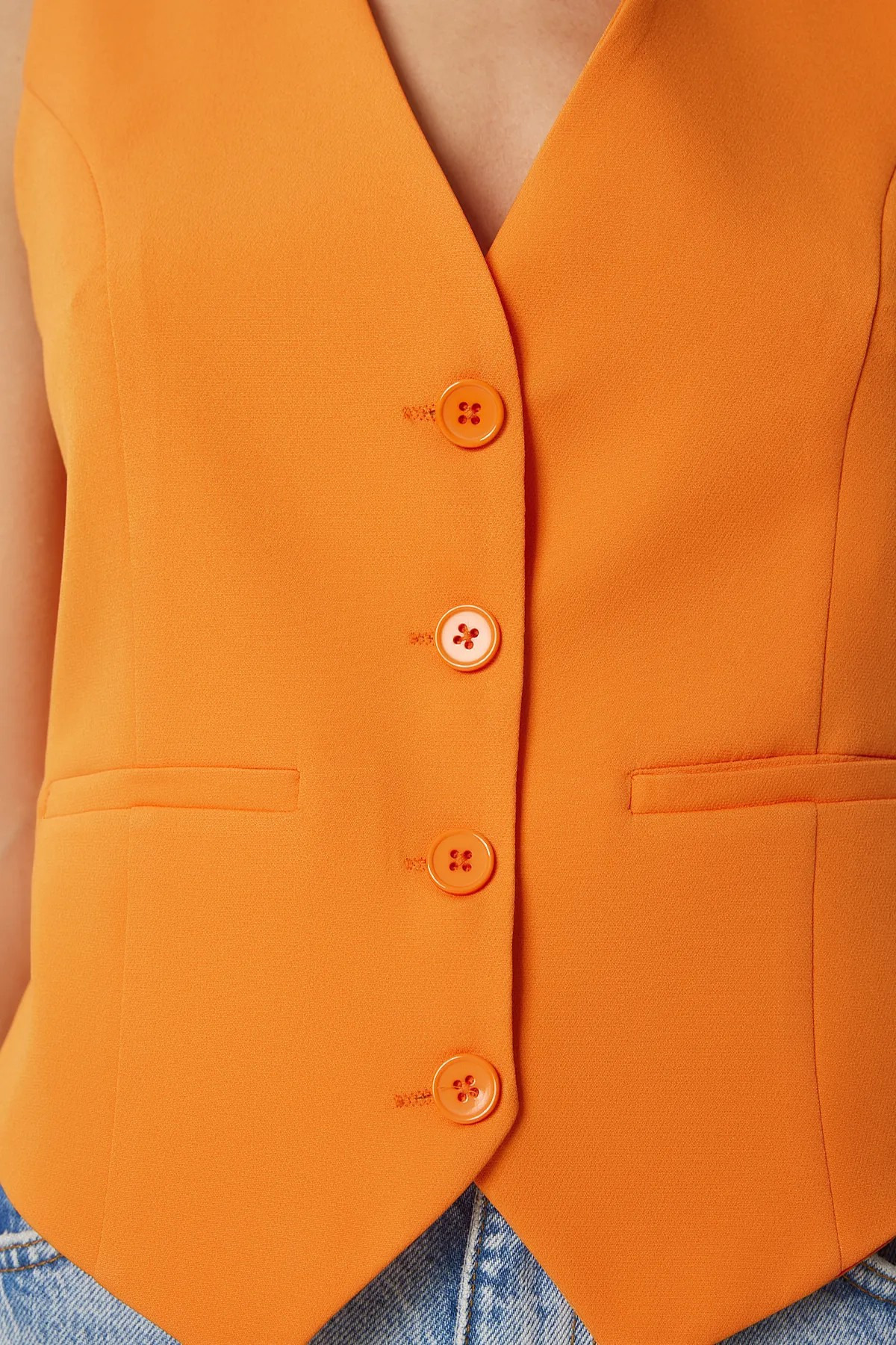 Kadın Turuncu V Yaka Astarlı Vücuda Oturan Yelek TL-100060064 Kadın Turuncu V Yaka Astarlı Vücuda Oturan Yelek TL-100060064 L