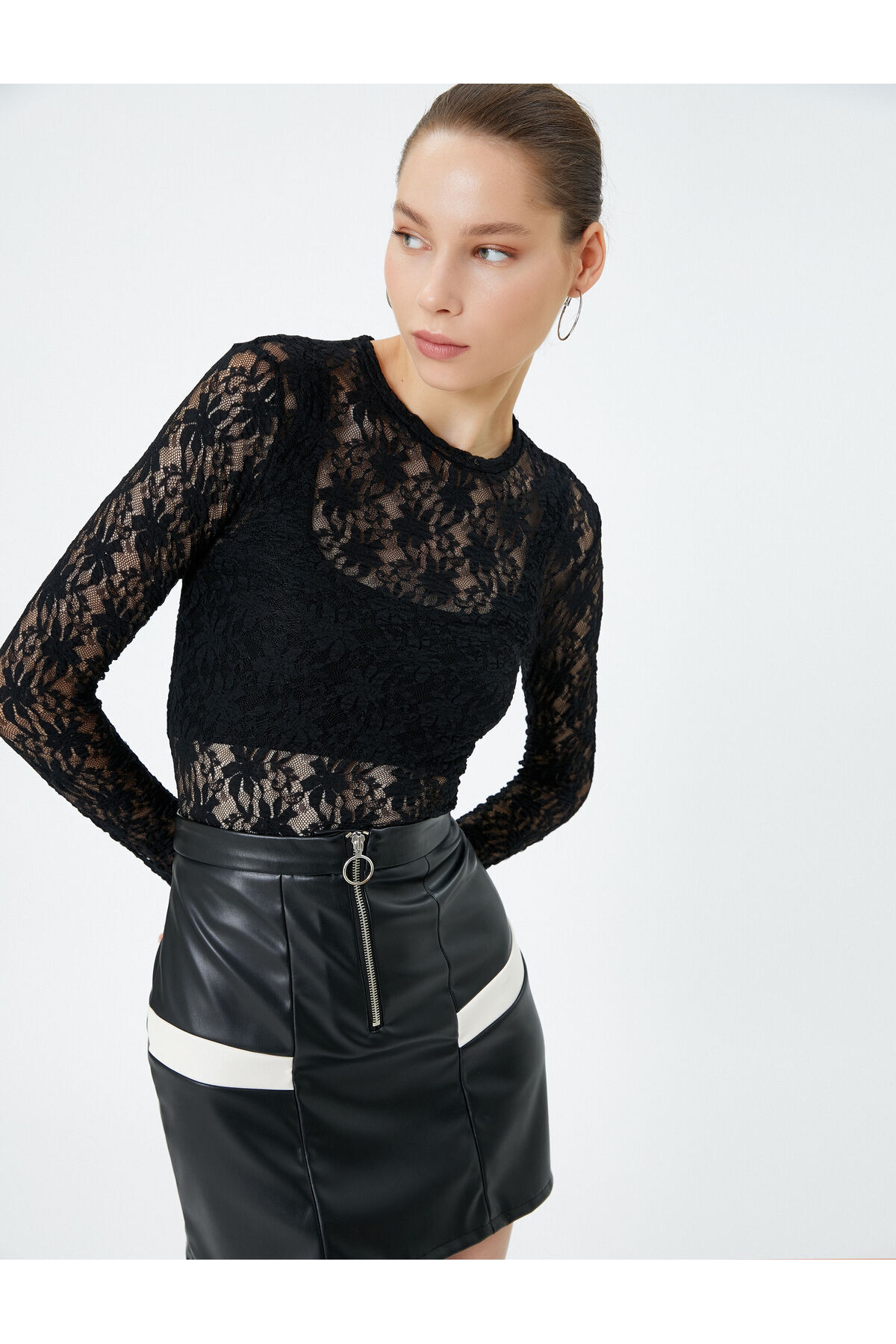 Zümrüt Yeşili Dantel Detay Bürümcük Bluz Zümrüt Yeşili Dantel Detay Bürümcük Bluz zka037 L
