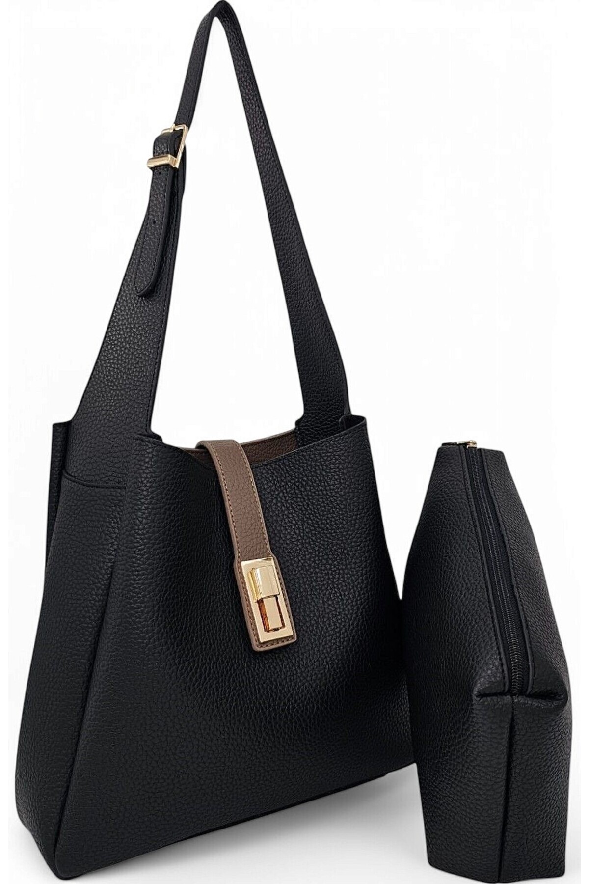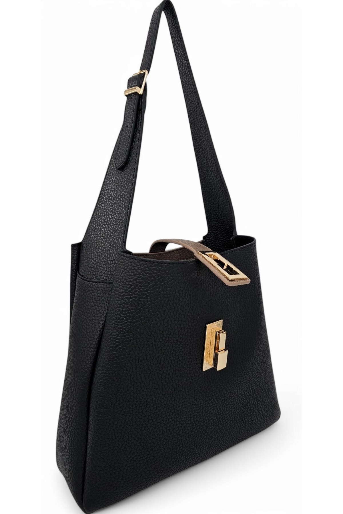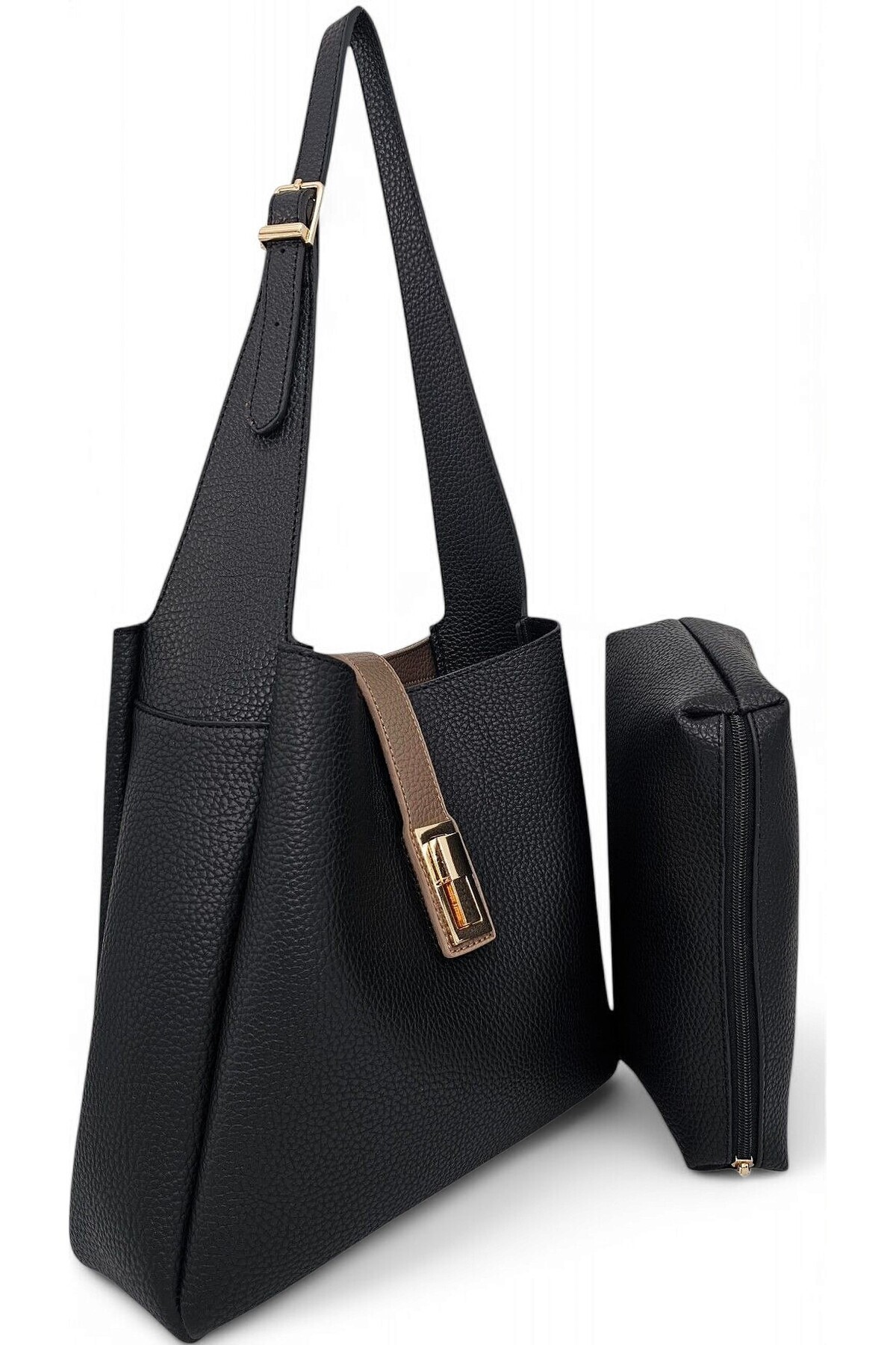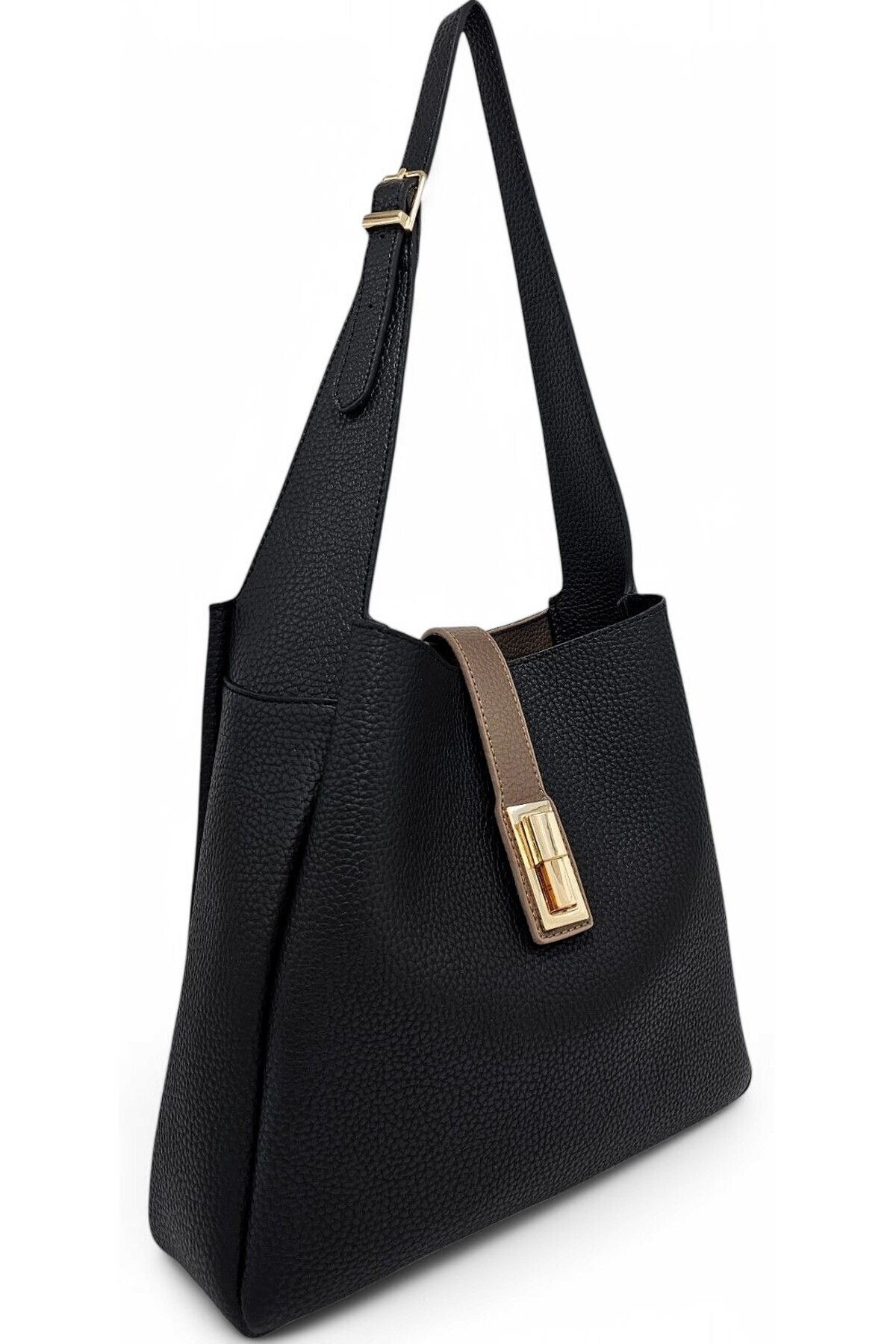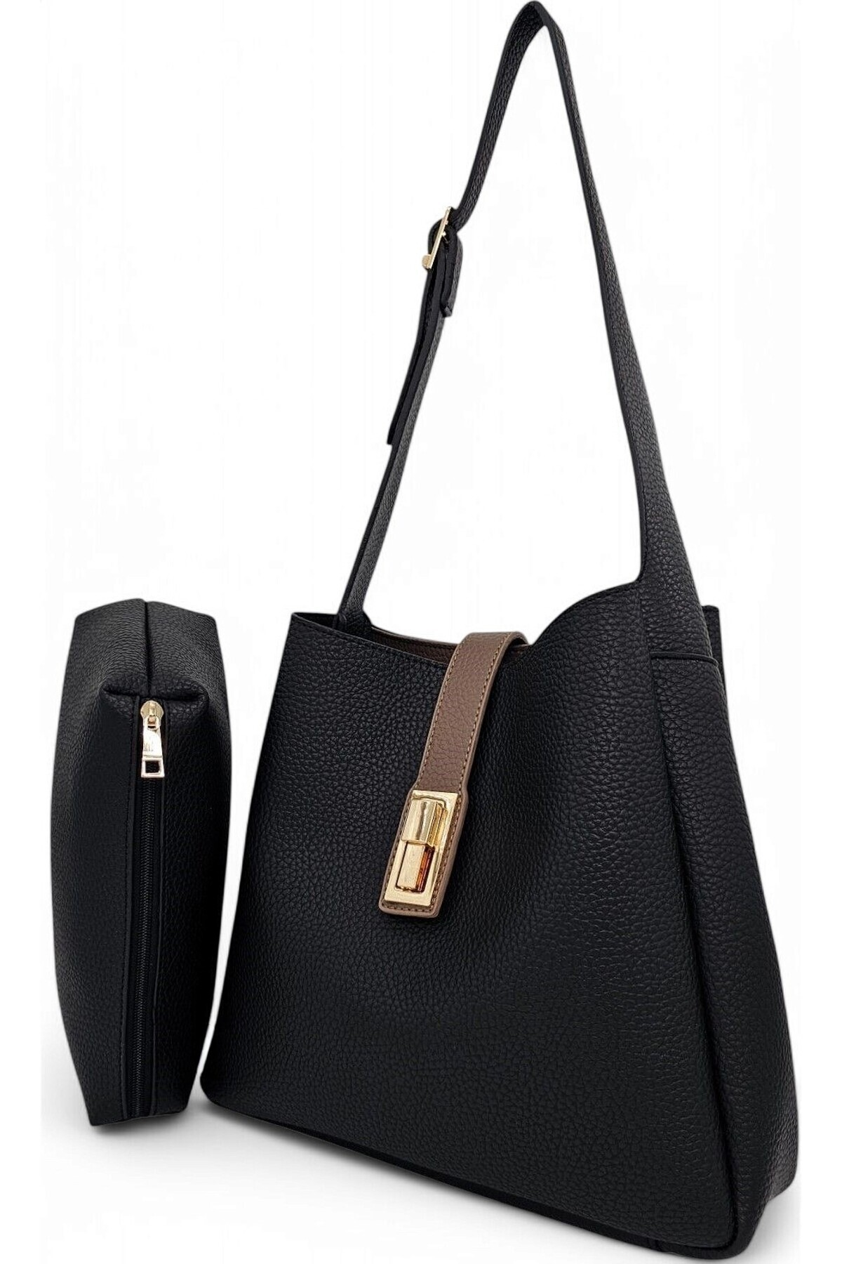 Siyah&Vizon Kilit Detaylı Yavru Çantalı Yumuşak Dokulu Kadın Omuz Çantası Siyah&Vizon Kilit Detaylı Yavru Çantalı Yumuşak Dokulu Kadın Omuz Çantası E-5922 Orta Boy