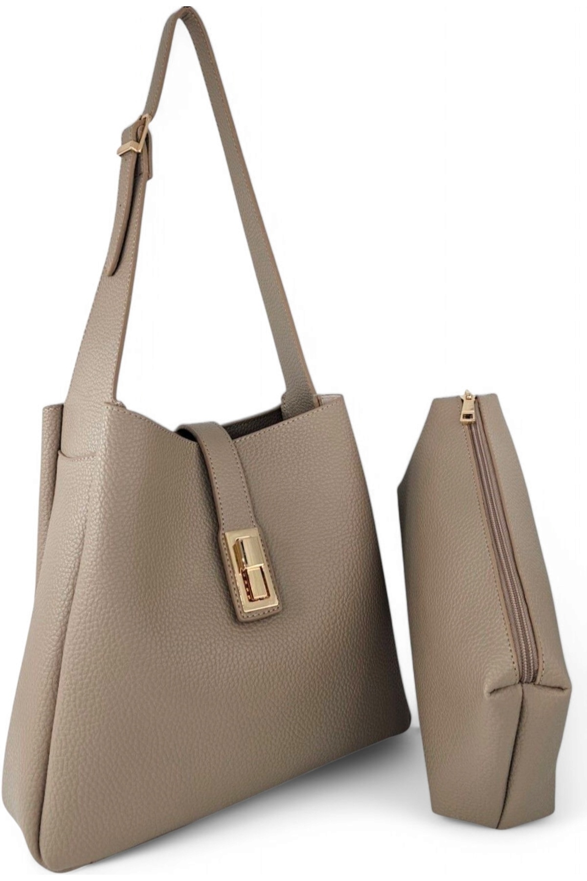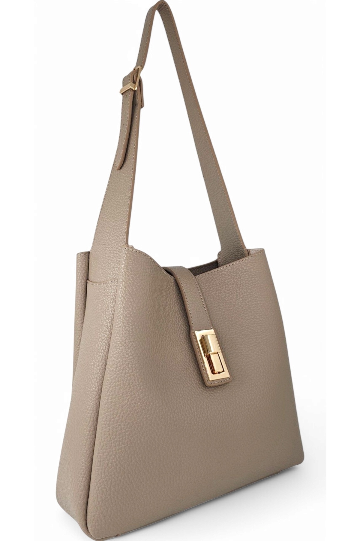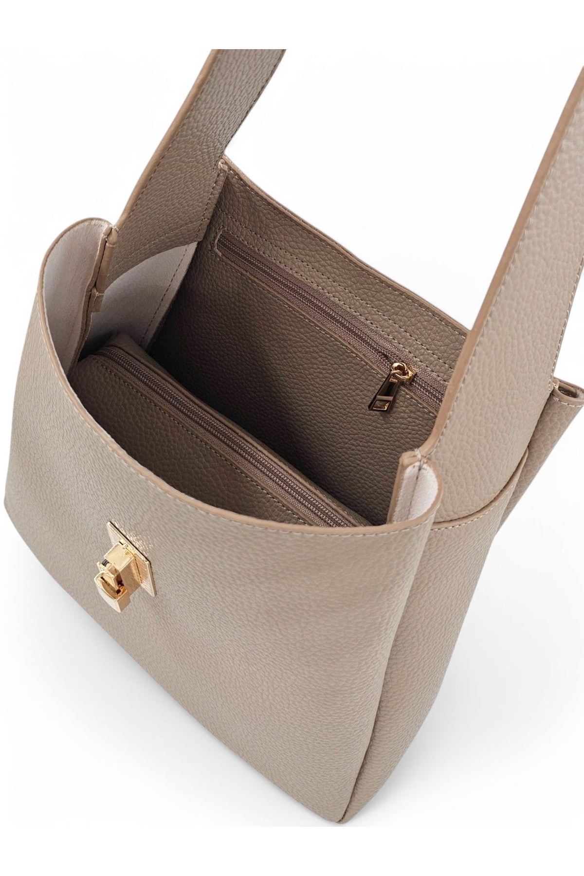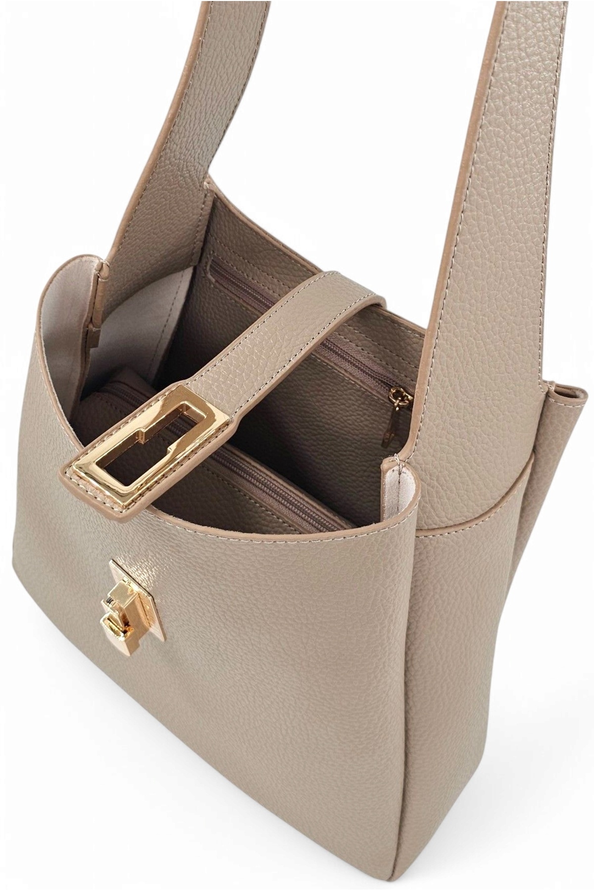 Kum Beji Kilit Detaylı Yavru Çantalı Yumuşak Dokulu Kadın Omuz Çantası Kum Beji Kilit Detaylı Yavru Çantalı Yumuşak Dokulu Kadın Omuz Çantası E-5922 Orta Boy