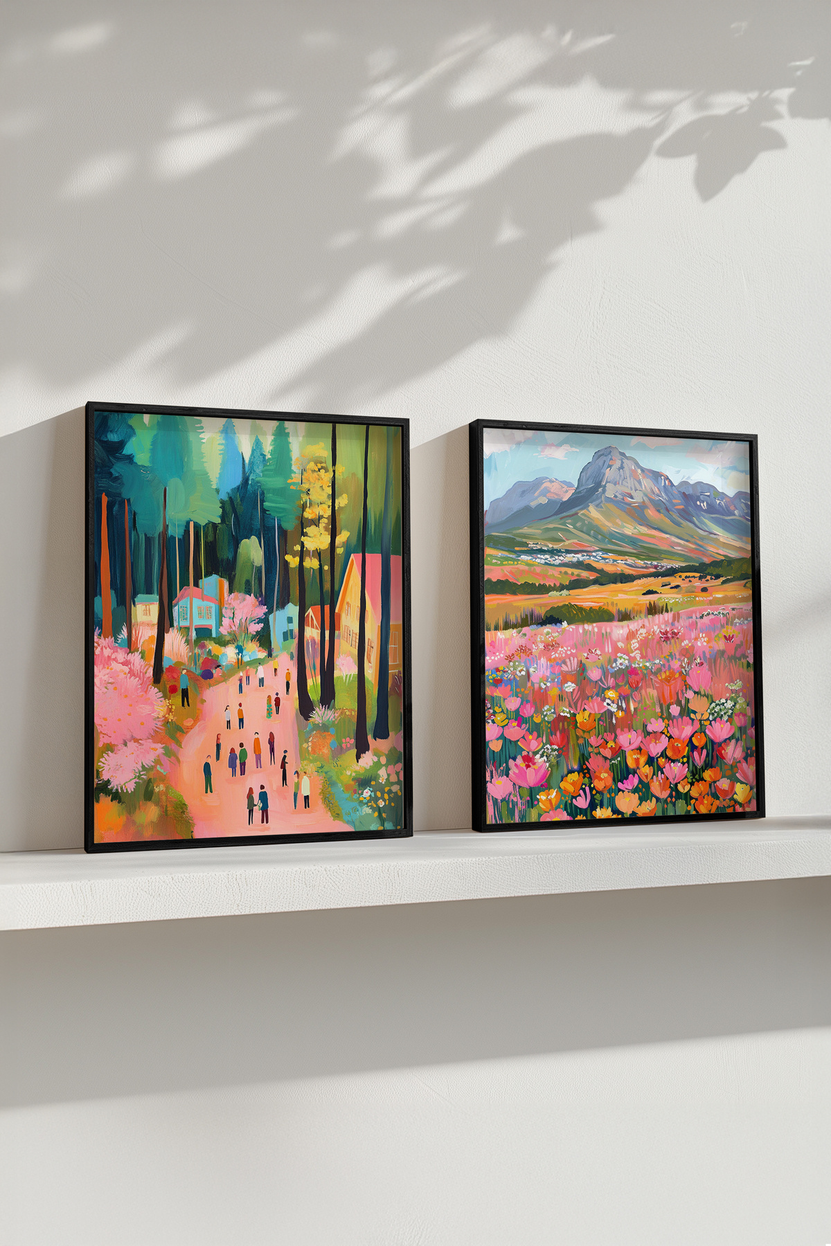 Çerçeveli pembe soyut tablo, 2'li yağlıboya efektli manzara ahşap çerçeveli tablo seti Yuna78 Çerçeveli pembe soyut tablo, 2'li yağlıboya efektli manzara ahşap çerçeveli tablo seti Yuna78 yuna78 50 x 70