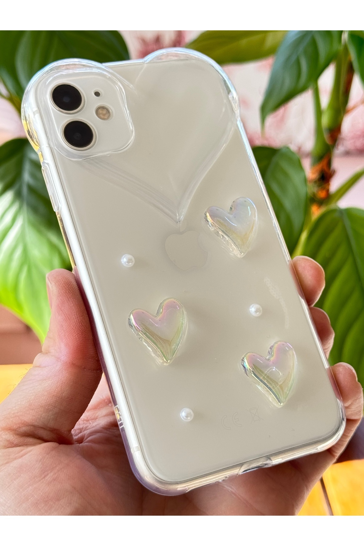Apple iPhone 11 Kılıf Kalpli İnci Desenli Kalp Kamera Tasarımlı Şeffaf Kamera Korumalı Silikon Kapak Apple iPhone 11 Kılıf Kalpli İnci Desenli Kalp Kamera Tasarımlı Şeffaf Kamera Korumalı Silikon Kapak DESİ İPHONE 11 تک سایز