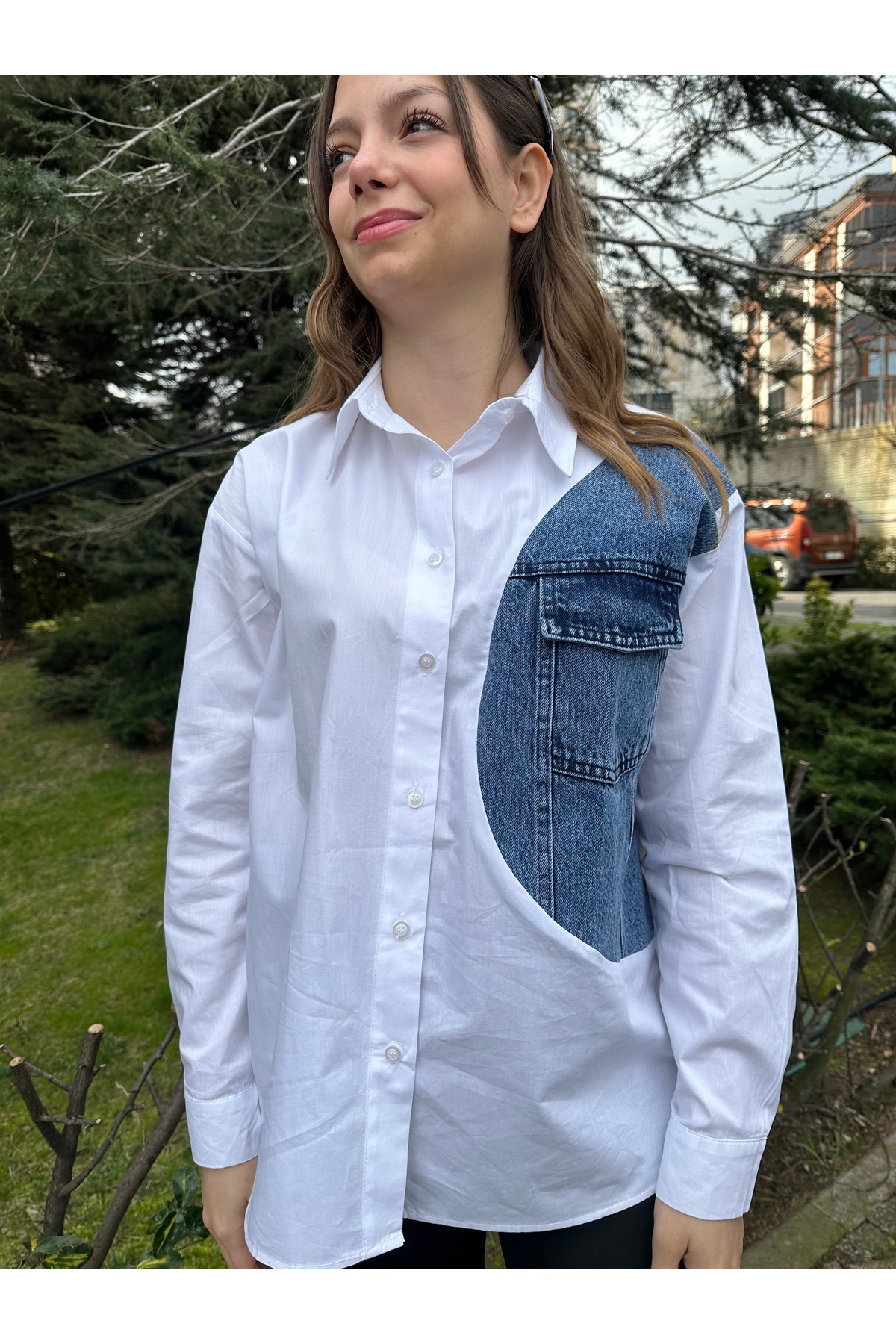 Kadın Kot detaylı gömlek Kadın Kot detaylı gömlek mo2 L