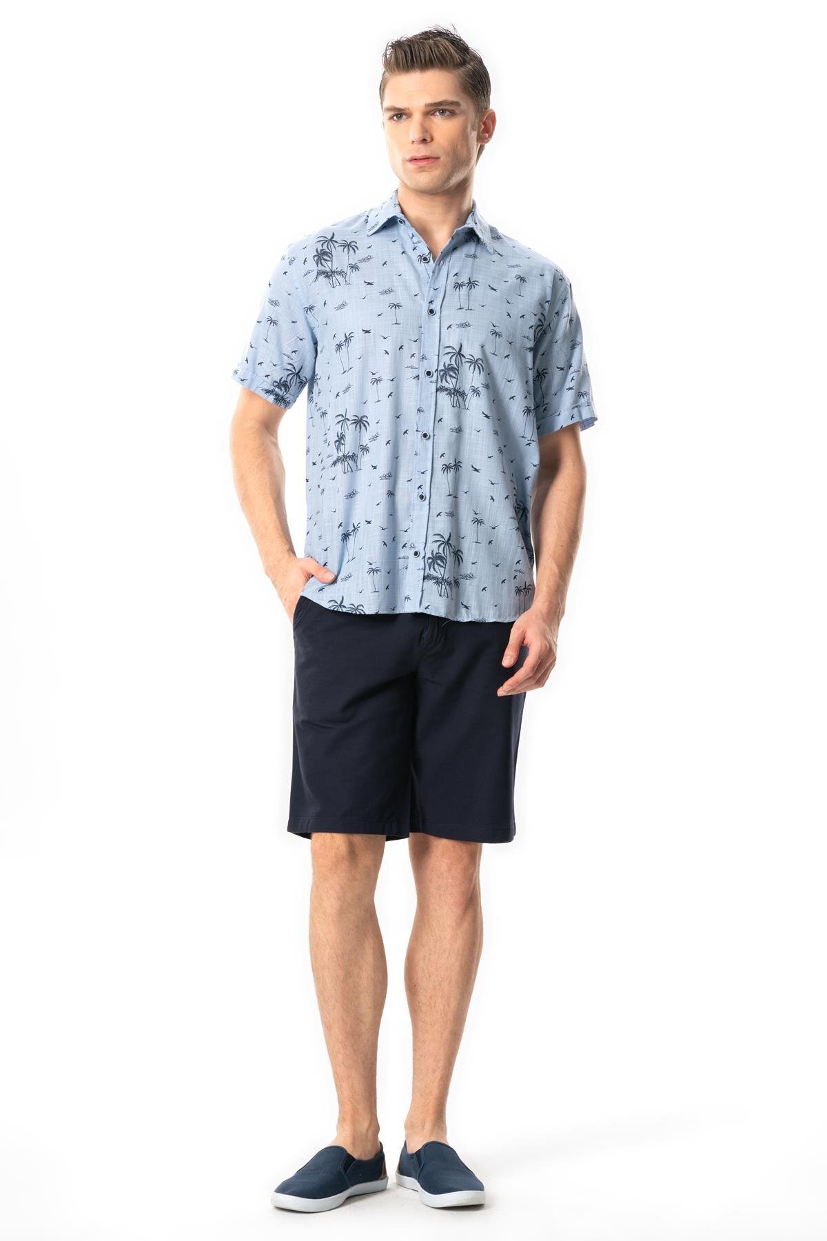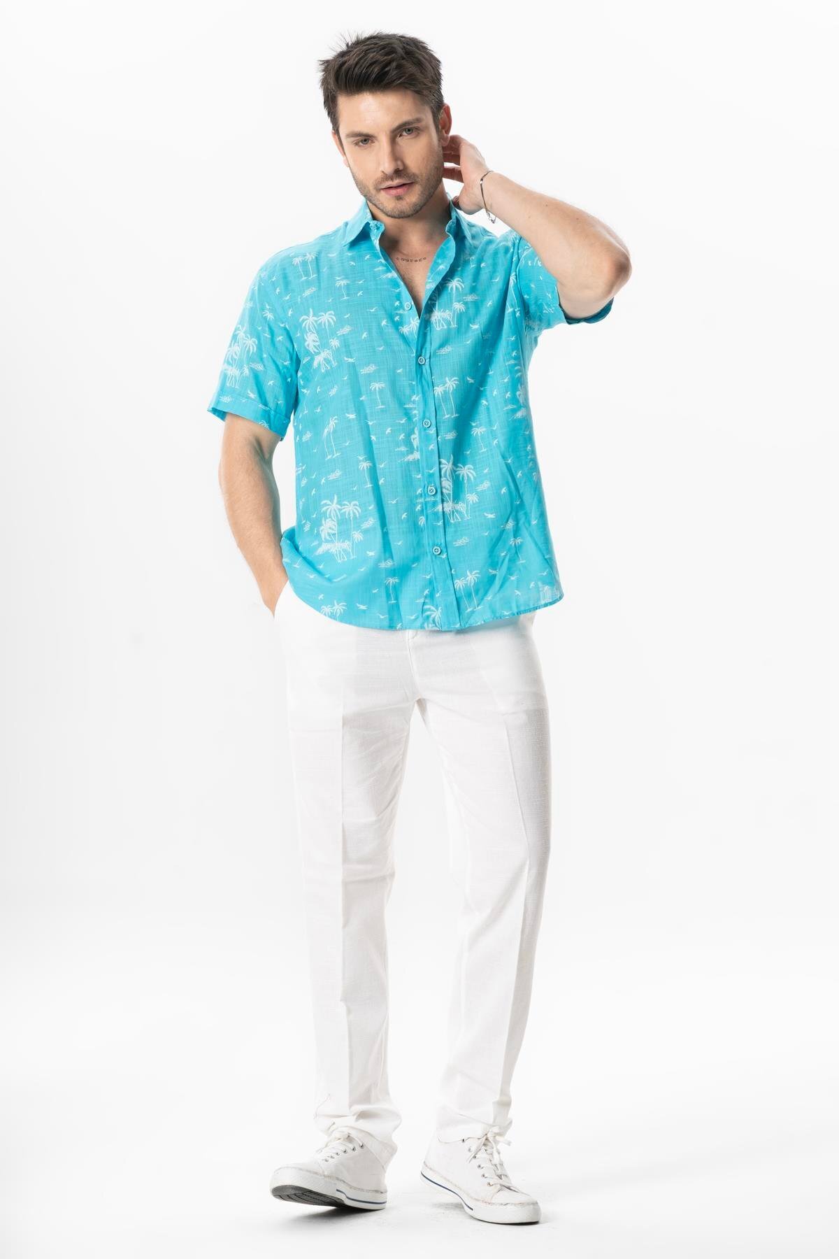 Kısa Kol Pamuklu Baskılı Erkek Yazlık Gömlek Turkuaz Trkz Kısa Kol Pamuklu Baskılı Erkek Yazlık Gömlek Turkuaz Trkz 371.01 3XL
