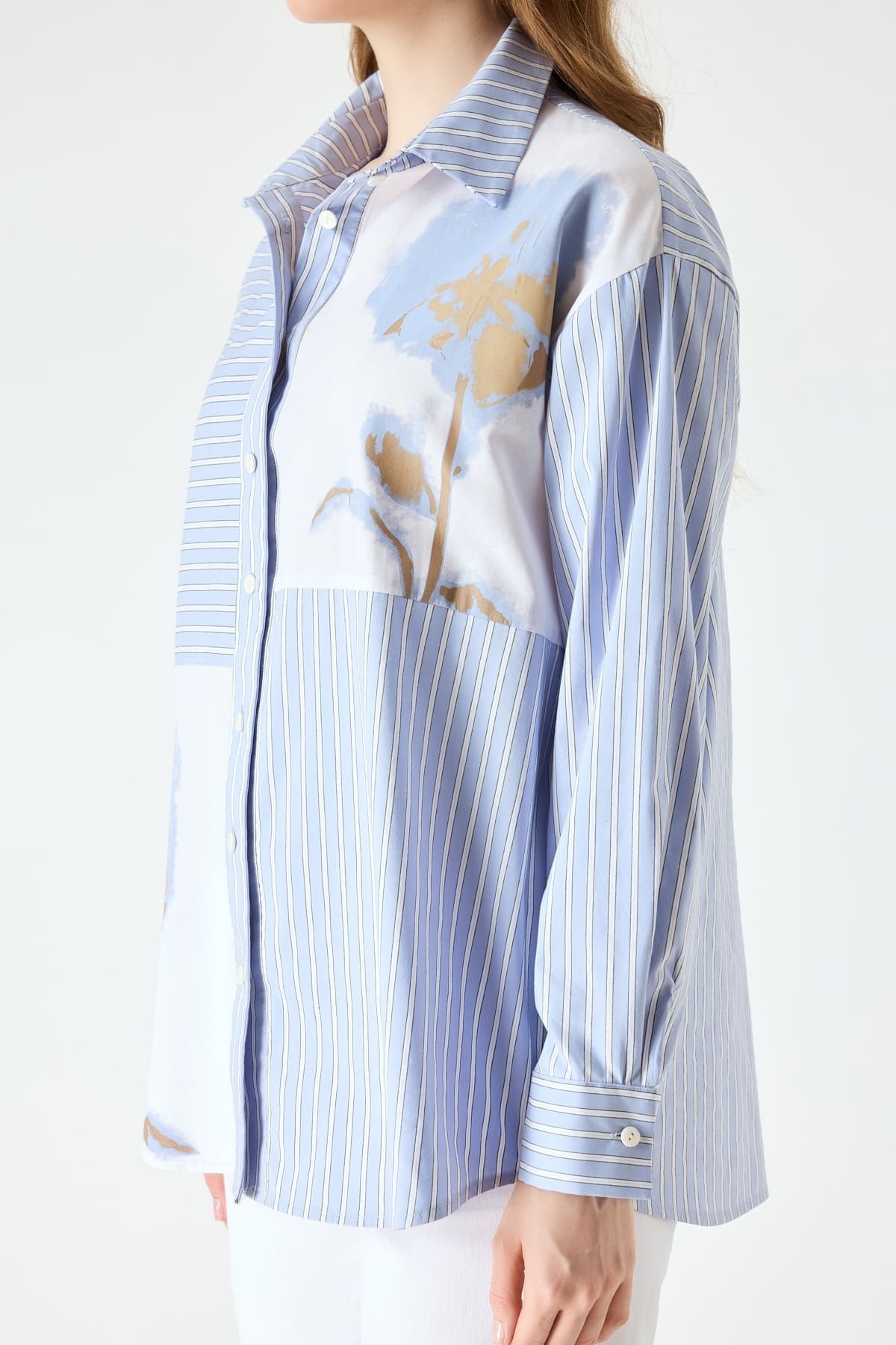 Baskı detaylı çizgili gömlek Baskı detaylı çizgili gömlek 351117024 4