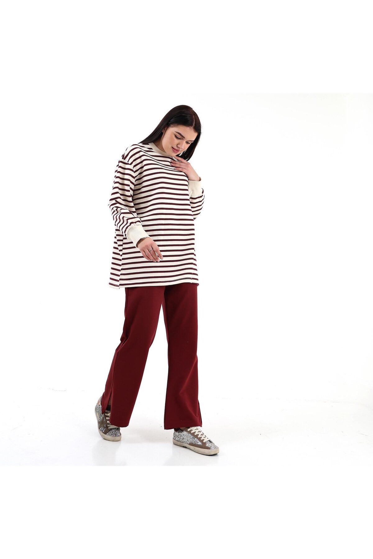 Çizgili Sweat Balon Kol İkili Spor Takım Bordo Çizgili Sweat Balon Kol İkili Spor Takım Bordo Asel-A4038 2