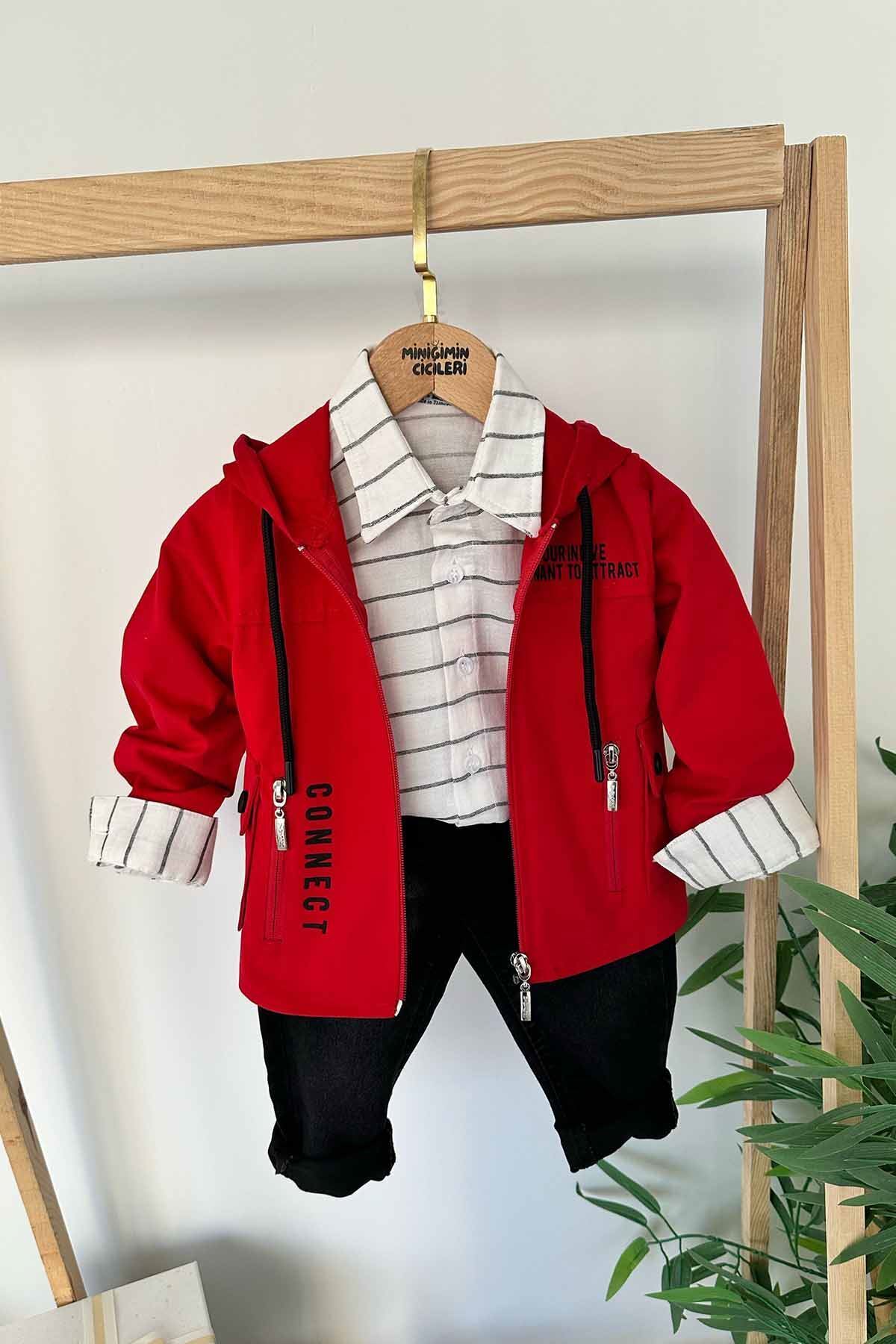 Miniğimin Cicileri 3 Parça Connect Baskı Kapüşonlu Ceketli Çizgi Detaylı Kotlu Erkek Çocuk Takım - Miniğimin Cicileri 3 Parça Connect Baskı Kapüşonlu Ceketli Çizgi Detaylı Kotlu Erkek Çocuk Takım - MDLMC4780 8 Yaş