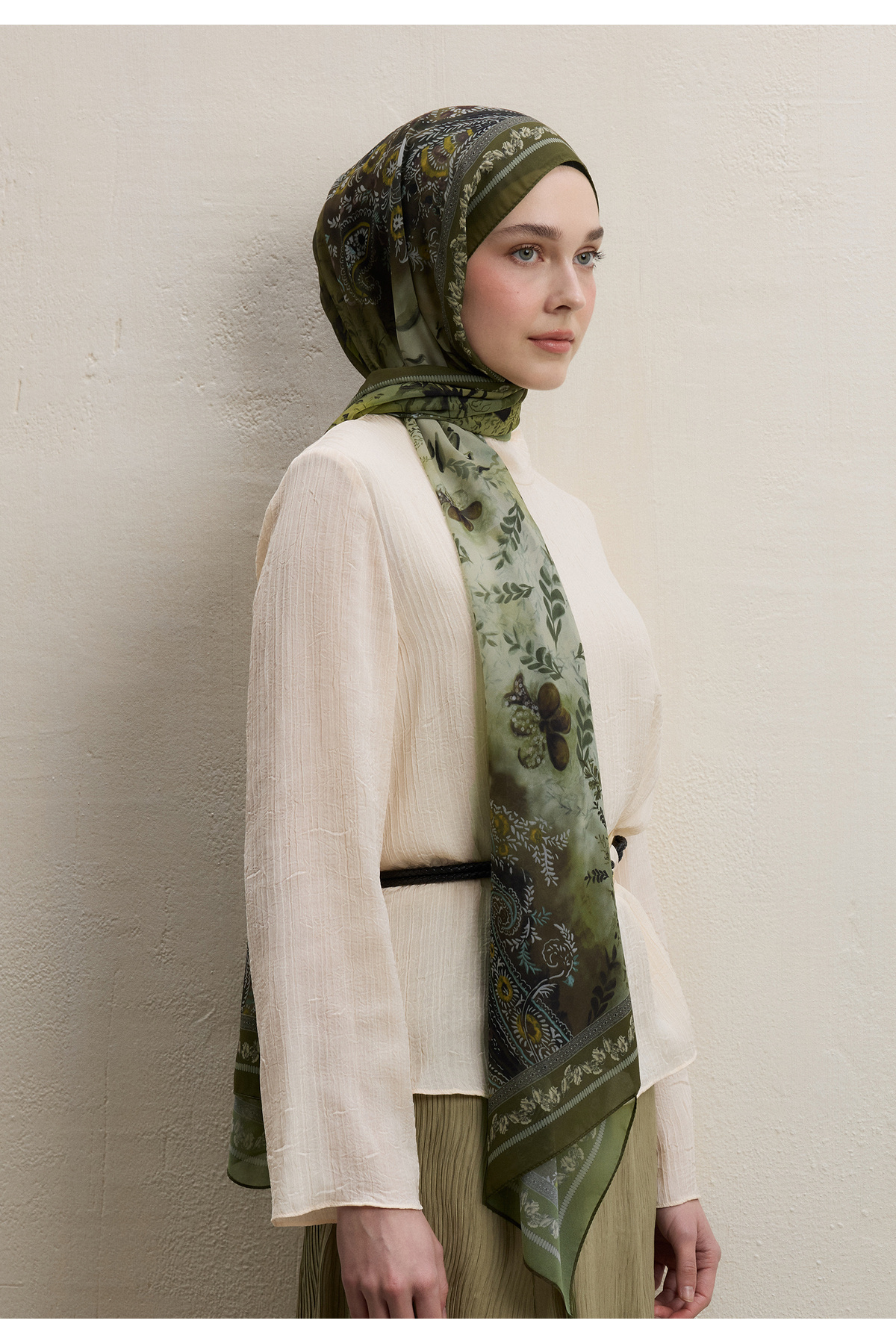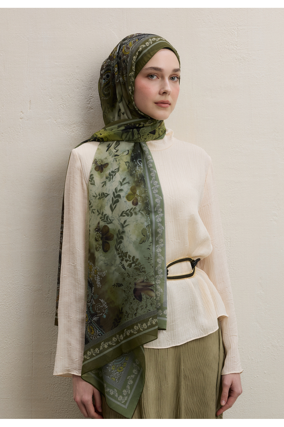 ELLEN DESEN İPEK KREP ŞAL HAKİ ELLEN DESEN İPEK KREP ŞAL HAKİ DSNS00000216 تک سایز