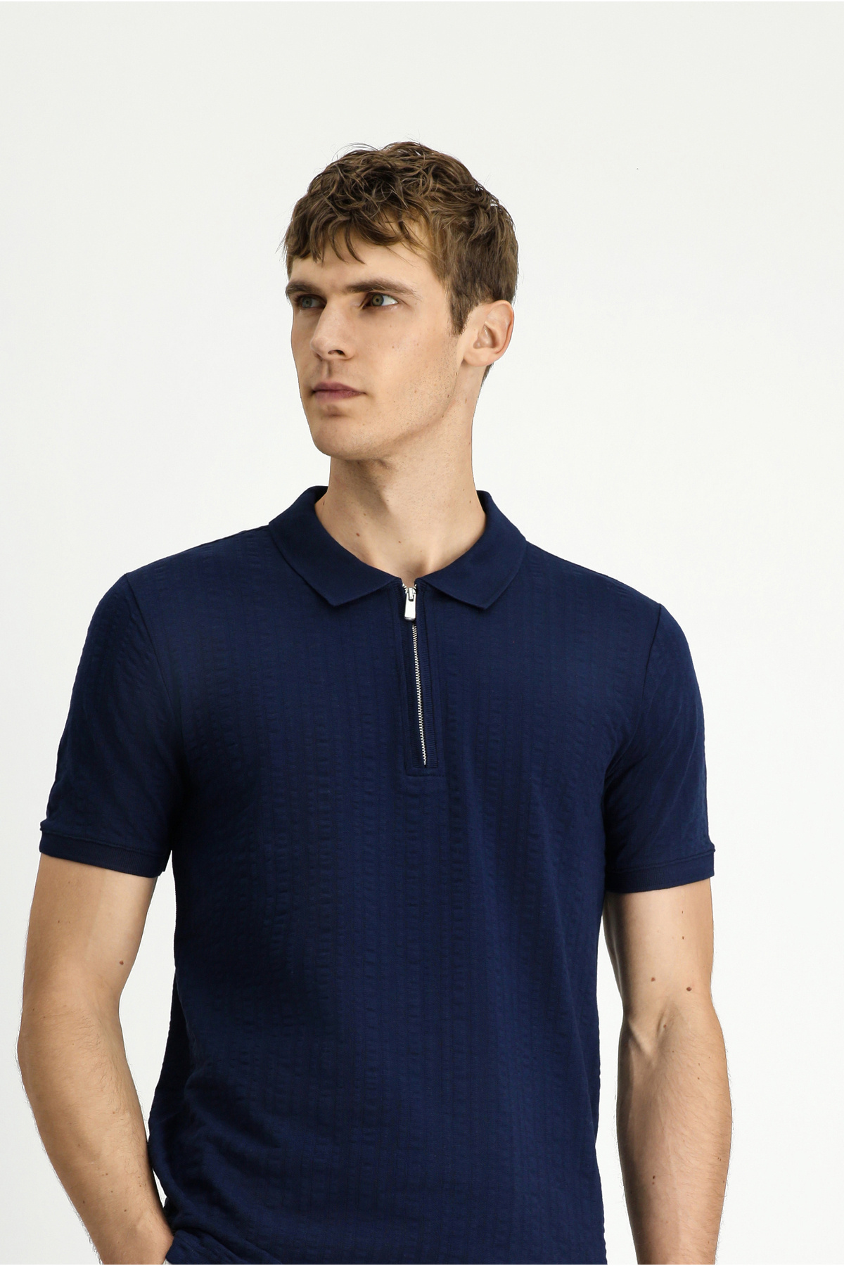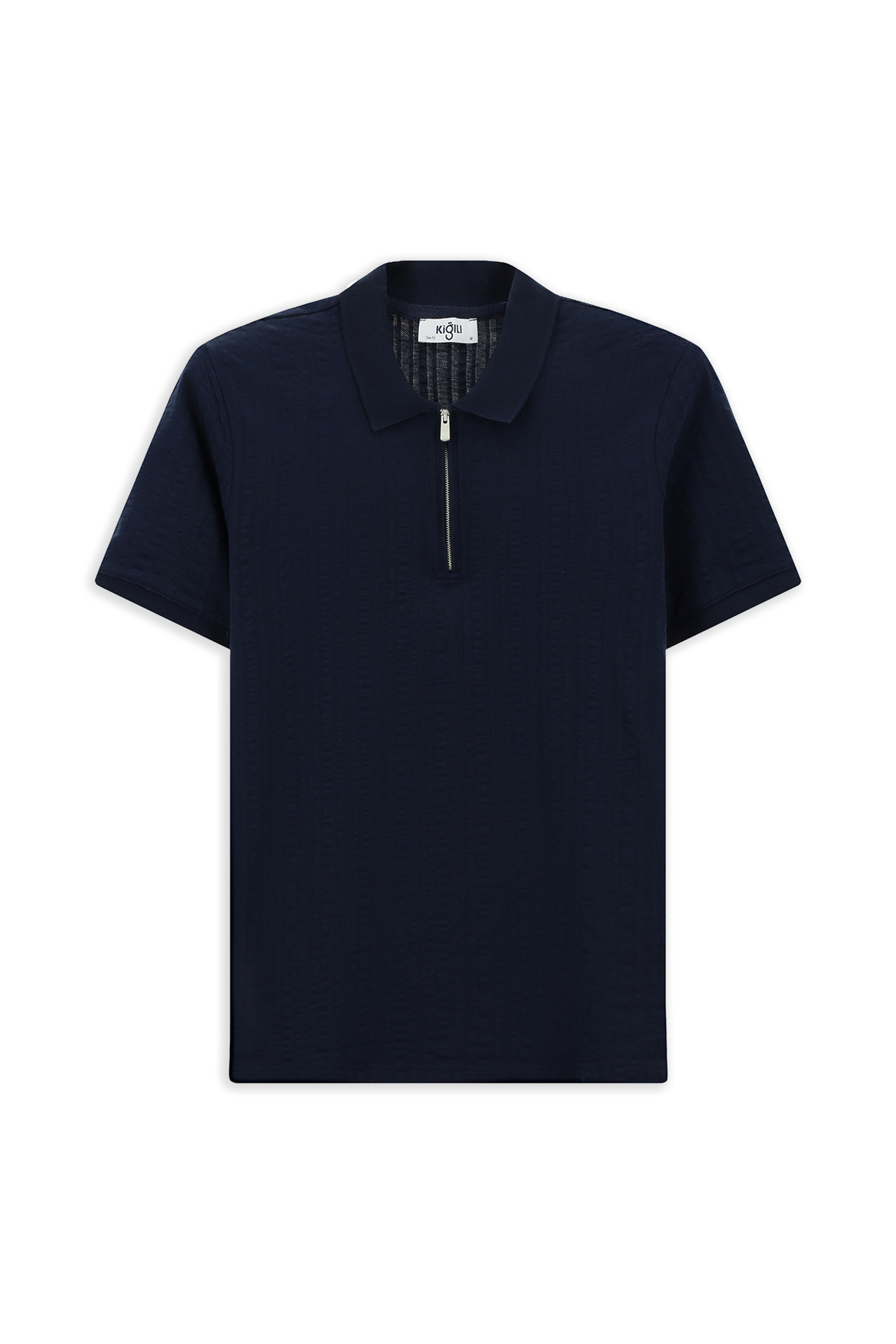 Slim Fit Dar Kesim Pamuk Desenli Fermuarlı Polo Yaka Tişört Slim Fit Dar Kesim Pamuk Desenli Fermuarlı Polo Yaka Tişört KY25BRC0AR003 4XL