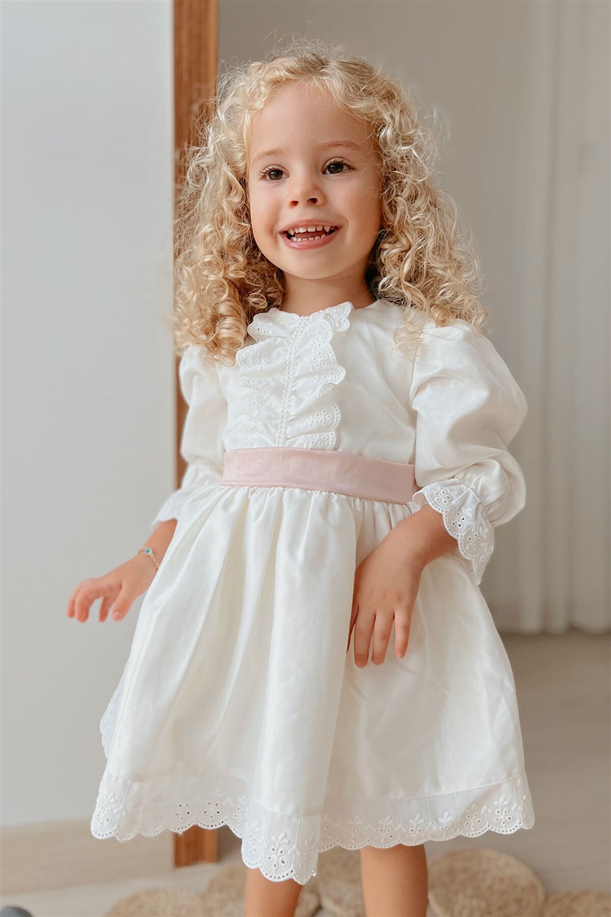 Pembe Uzun Kollu Çiçek Nakışlı Kız Çocuk Elbise - Rina Pembe Uzun Kollu Çiçek Nakışlı Kız Çocuk Elbise - Rina LM1825 6 Yaş