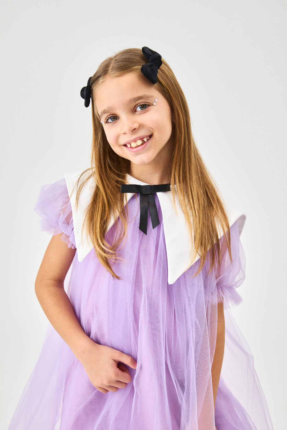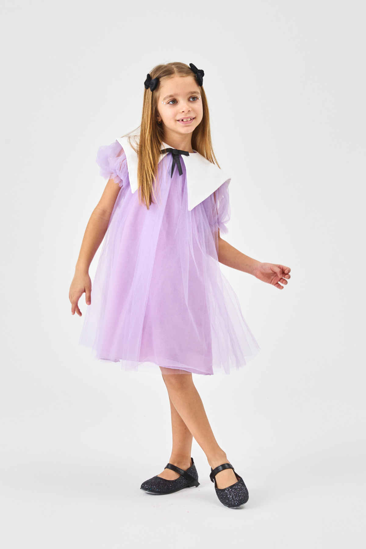 Lila Sivri Yakalı Kız Çocuk Tül Elbise - Nicole Lila Sivri Yakalı Kız Çocuk Tül Elbise - Nicole LM1853 8 Yaş