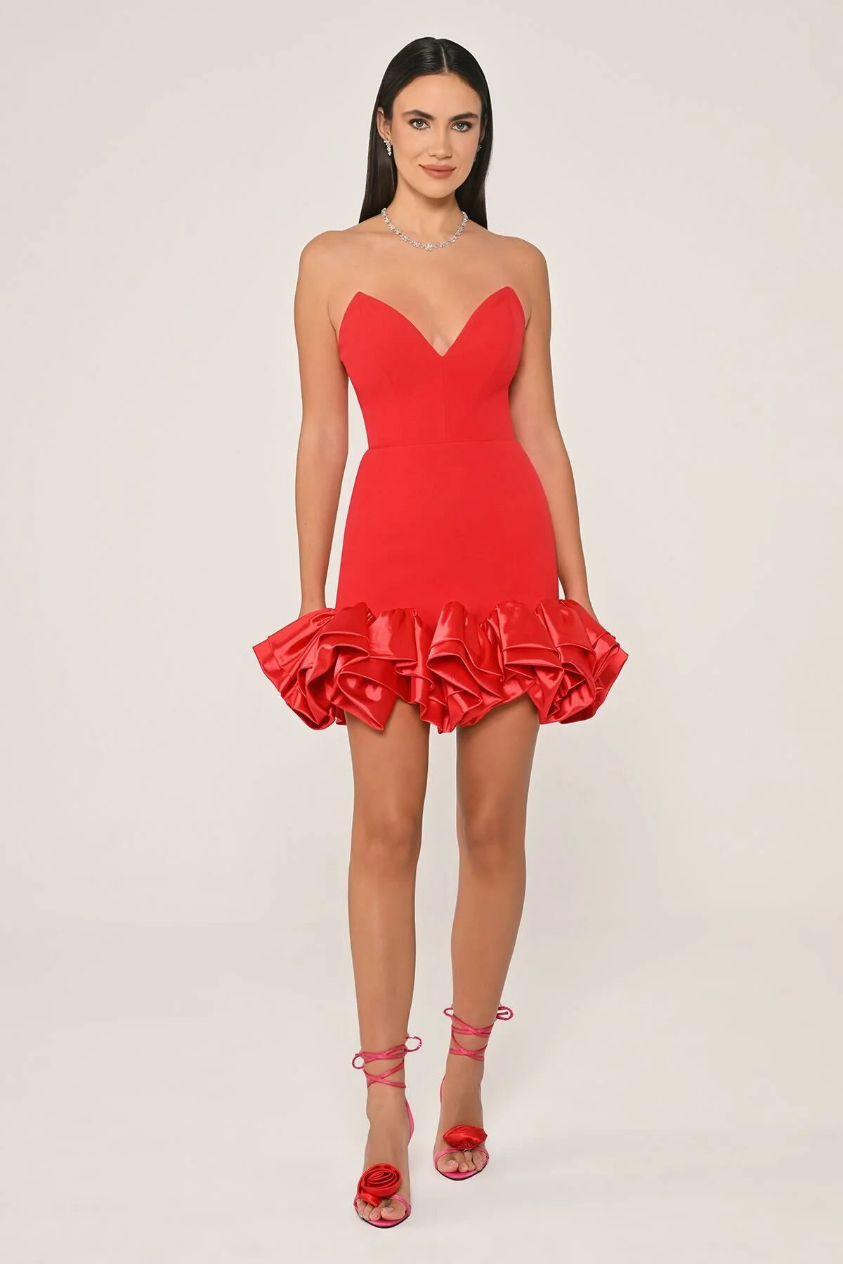 Kadın Straplez Yaka Etek Uçları FırFır Saten Kumaş Kısa Pembe Abiye & Mezuniyet Elbisesi AB6922-PEMB Kadın Straplez Yaka Etek Uçları FırFır Saten Kumaş Kısa Pembe Abiye & Mezuniyet Elbisesi AB6922-PEMB 42