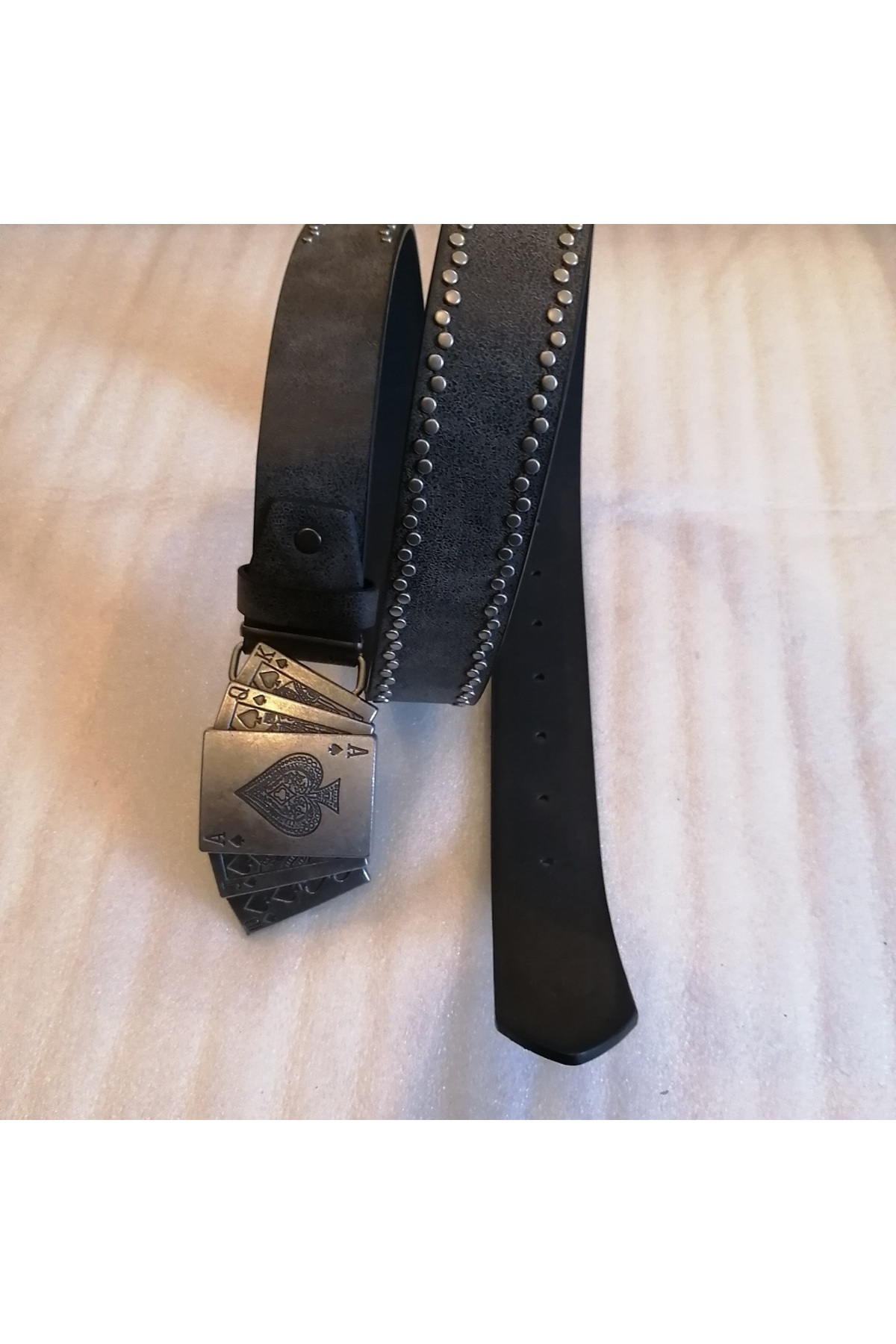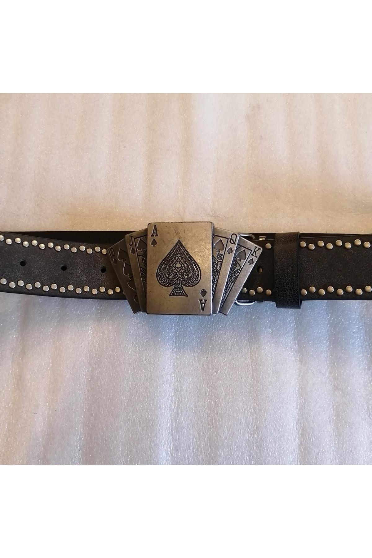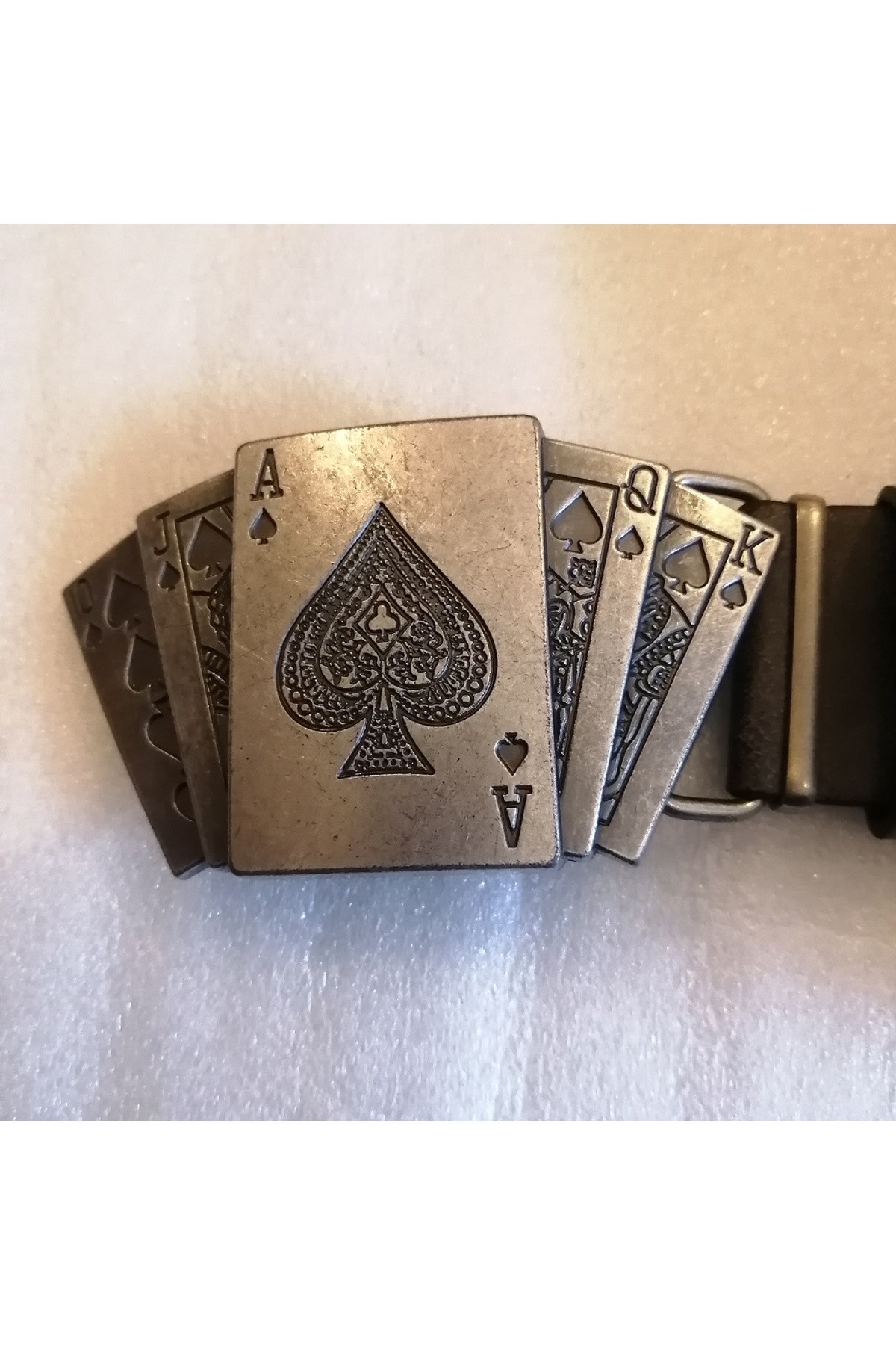 Unisex otantik suni deri gri perçinli gümüş antik eskitme poker maça floş royal kovboy tokalı kemer Unisex otantik suni deri gri perçinli gümüş antik eskitme poker maça floş royal kovboy tokalı kemer 5575904 125 CM