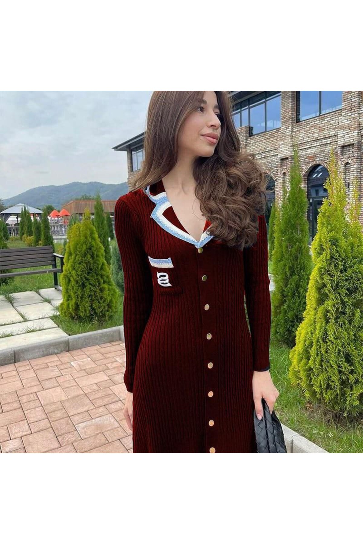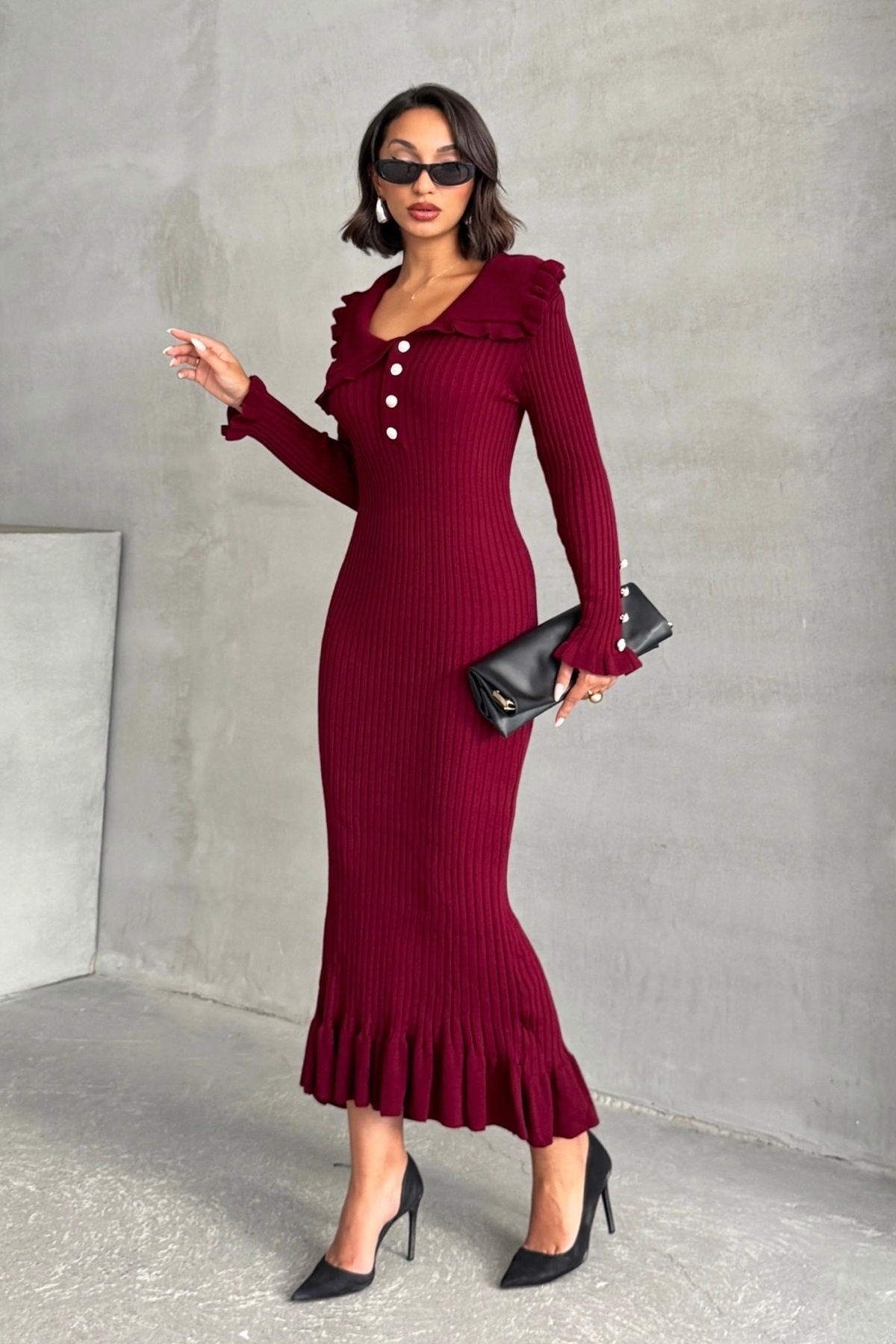 KADIN maxi dantel yaka triko elbise KADIN maxi dantel yaka triko elbise 2025-3 Standart
