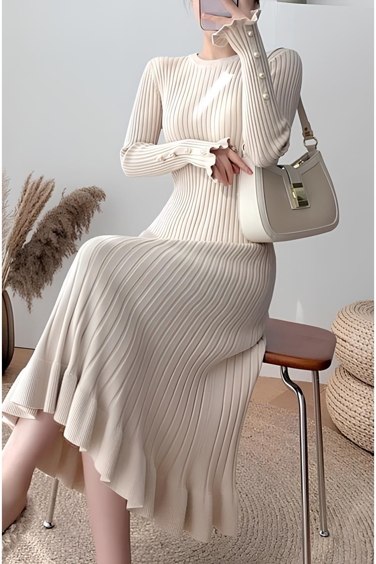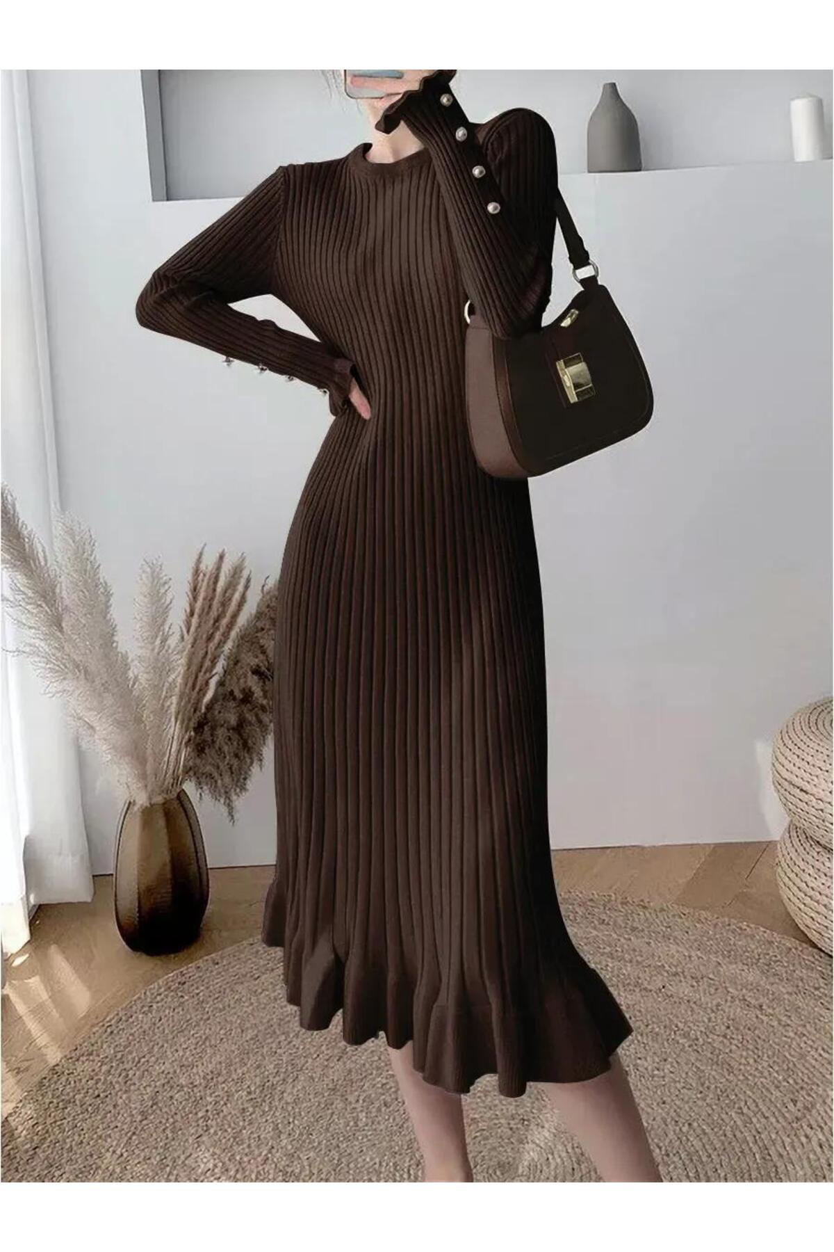 KADIN maxi dantel yaka triko elbise KADIN maxi dantel yaka triko elbise 2025-3 Standart