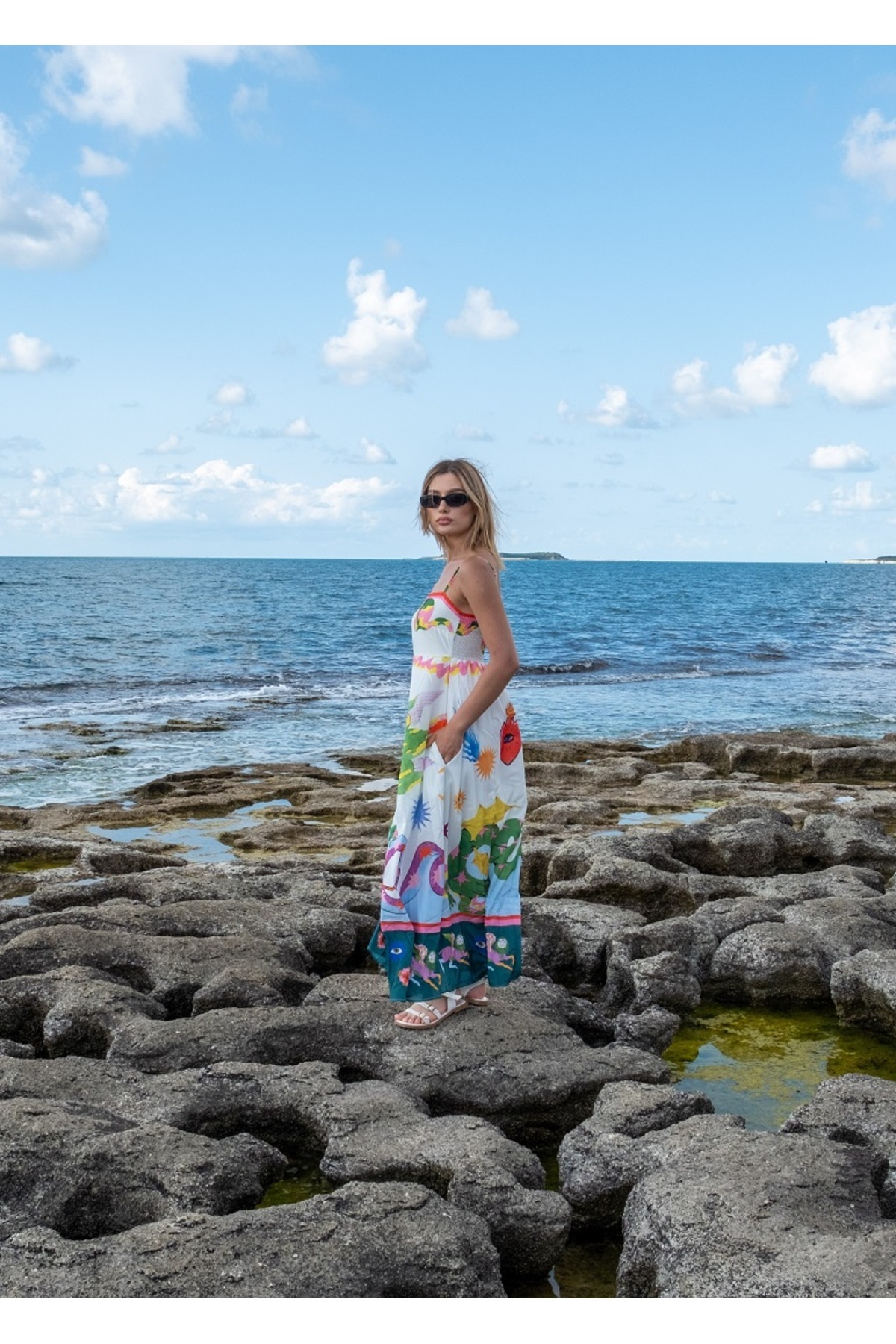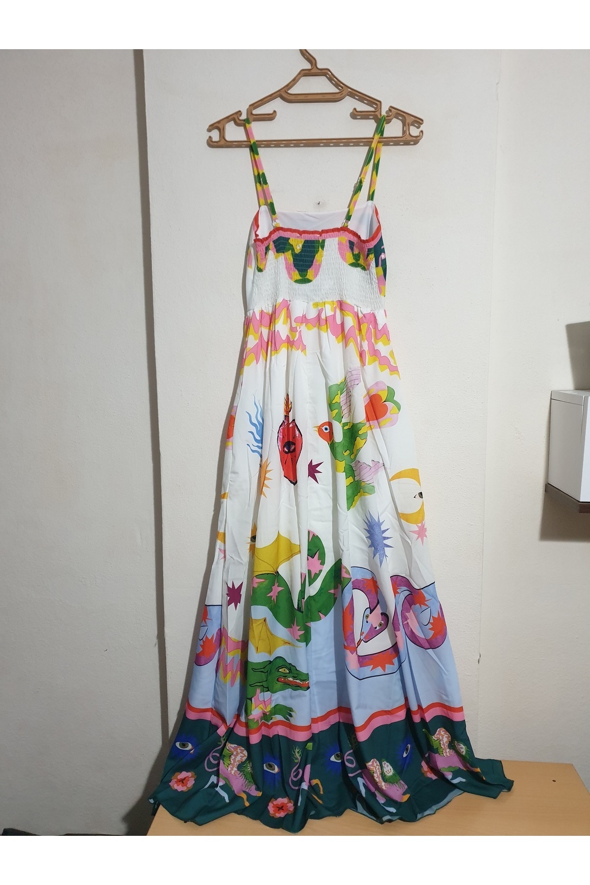 Askılı Kare Yaka Sırtı Gipeli Çok Renkli Desenli Astarlı Maxi Elbise Askılı Kare Yaka Sırtı Gipeli Çok Renkli Desenli Astarlı Maxi Elbise EDOL0GAB XL