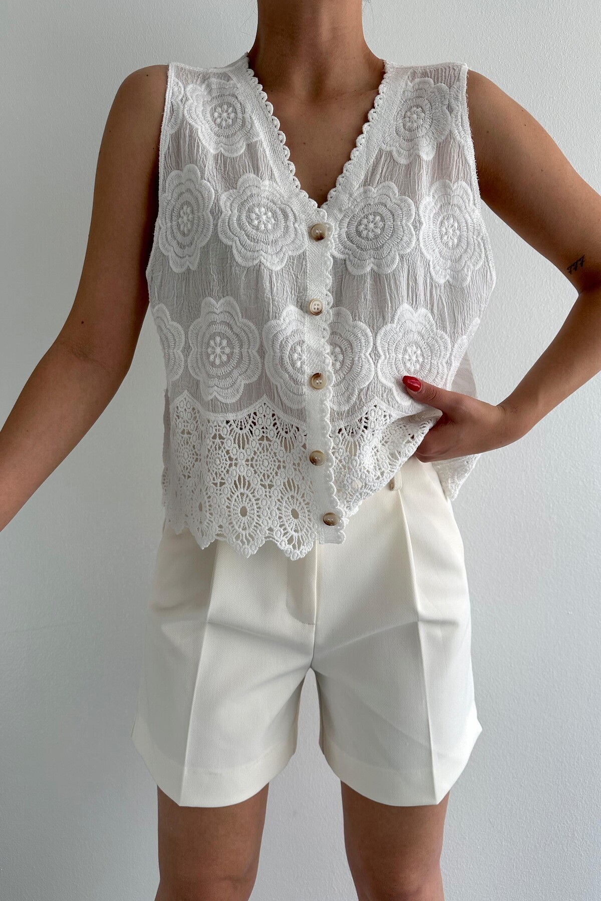 KADIN BEYAZ ÇİÇEK NAKIŞLI DANTELLİ YELEK STANDART BEDEN M37286 KADIN BEYAZ ÇİÇEK NAKIŞLI DANTELLİ YELEK STANDART BEDEN M37286 Standart