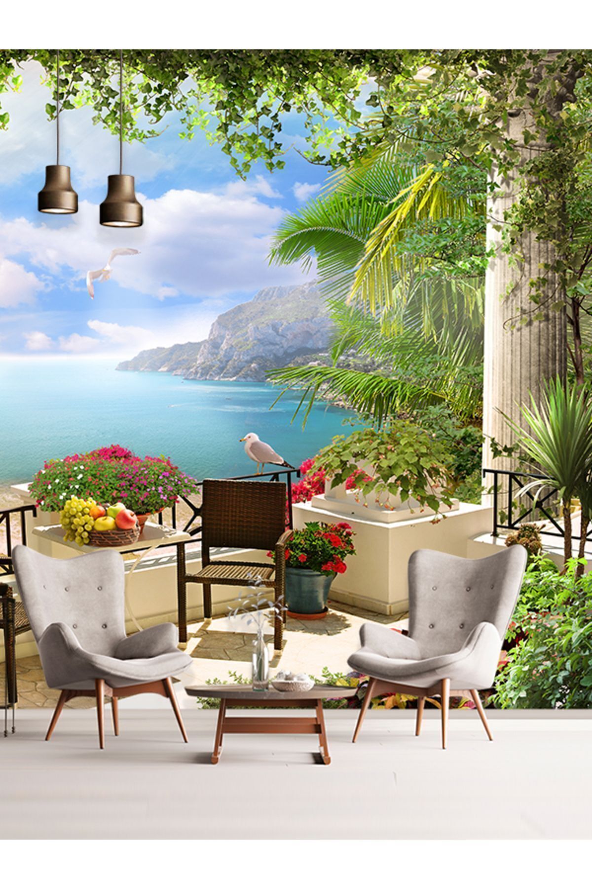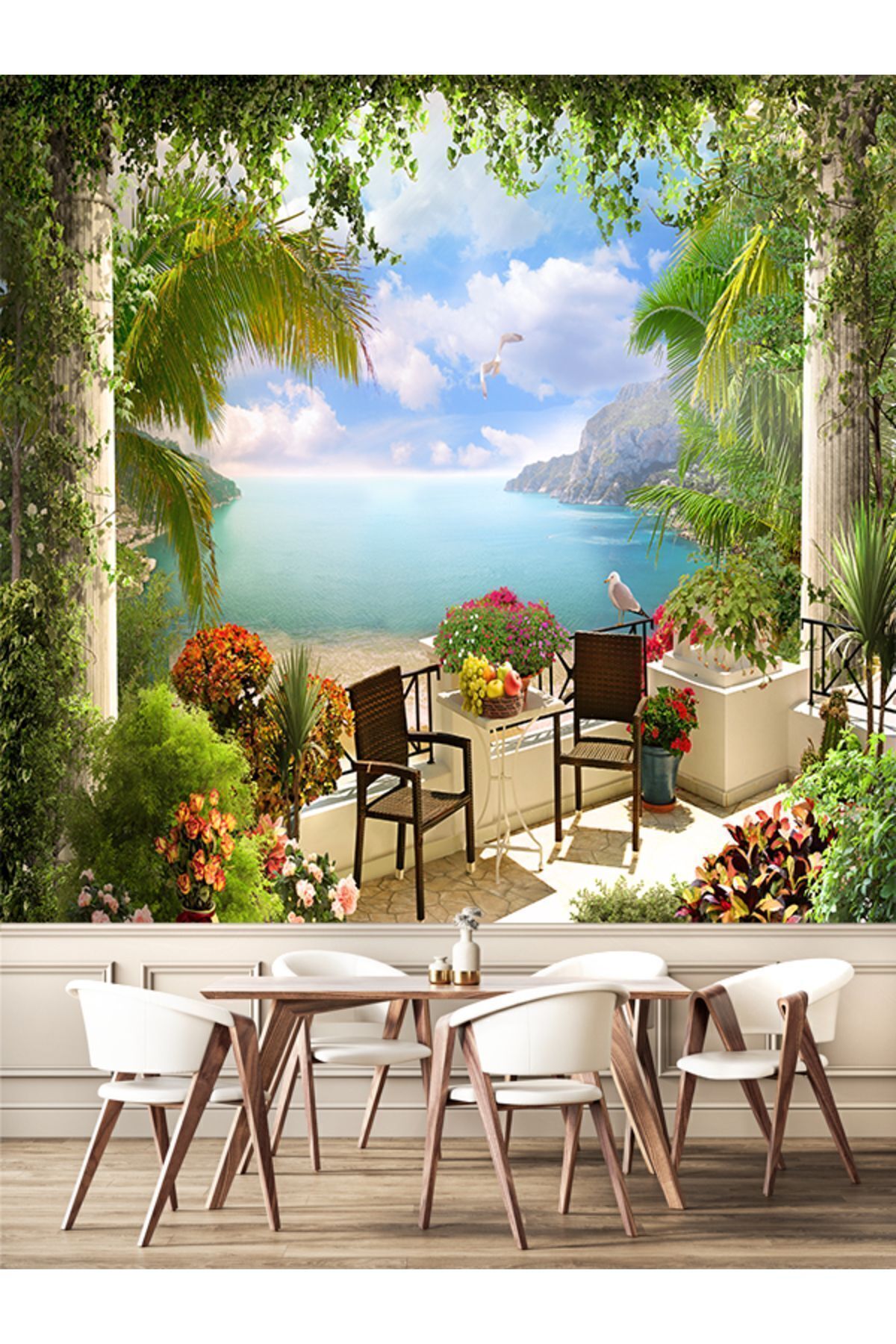 Deniz Manzaralı Balkon Desenli Tekstil Duvar Kağıdı Deniz Manzaralı Balkon Desenli Tekstil Duvar Kağıdı Dreamwall2023-1700 450 x 240
