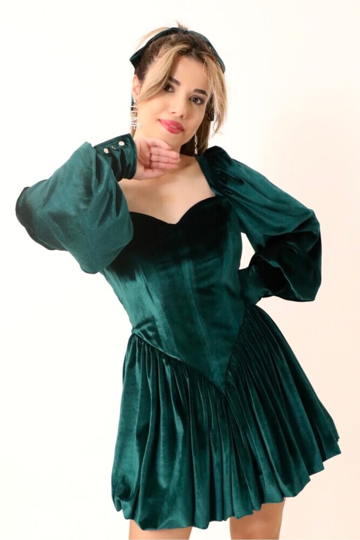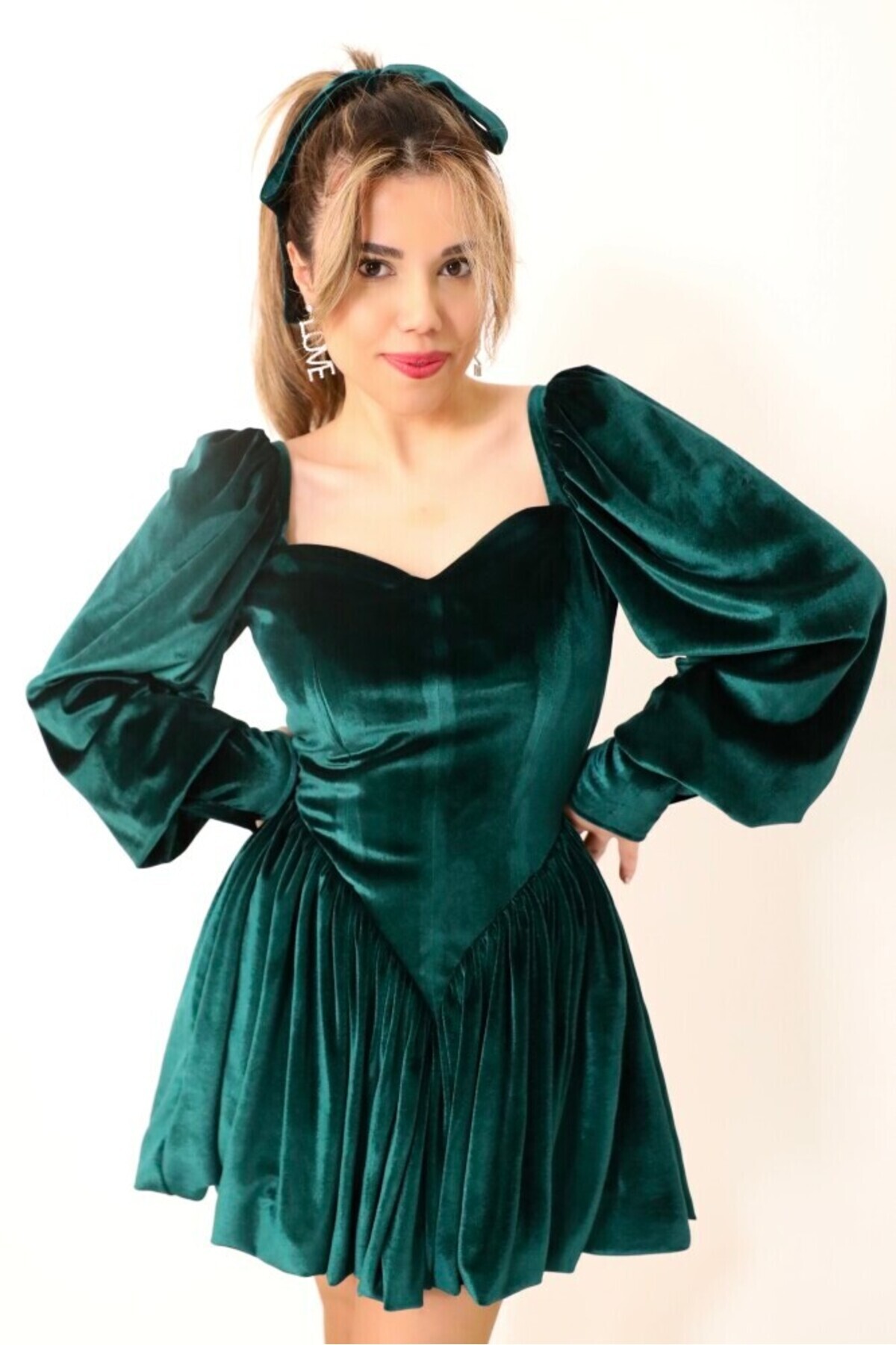 YEŞİL BALON KOLLU KADİFE MİNİ ELBİSE YEŞİL BALON KOLLU KADİFE MİNİ ELBİSE BKC-3113 46