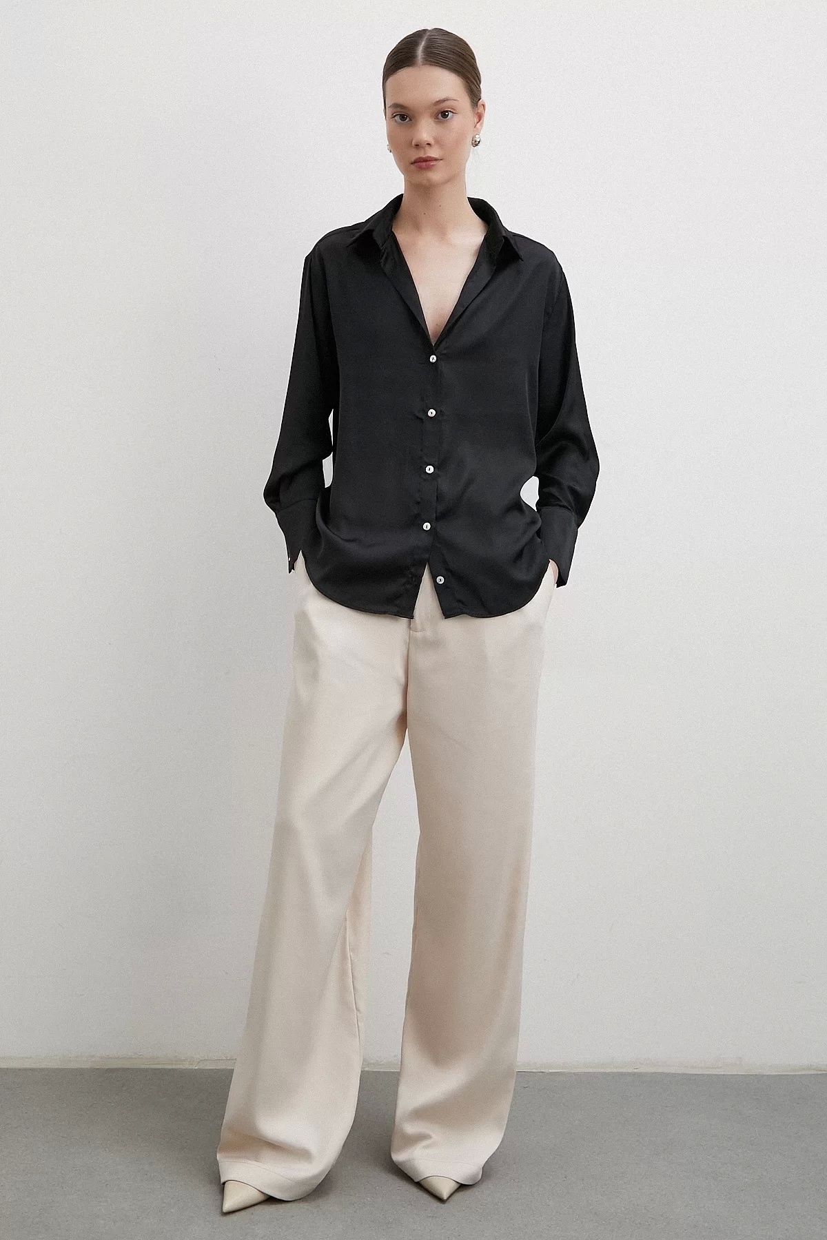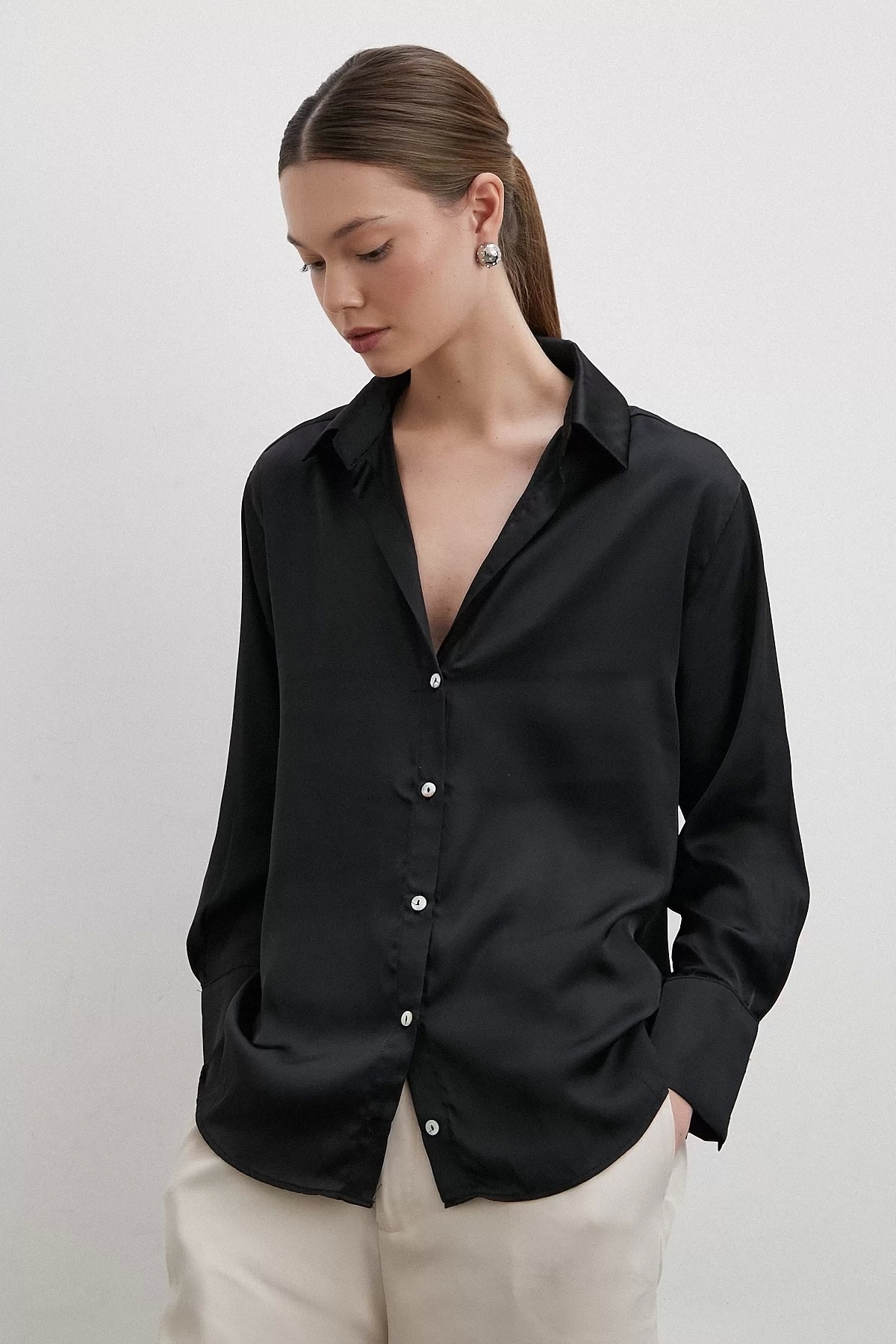 V Yaka Şifon Siyah Gömlek V Yaka Şifon Siyah Gömlek P148S4391 L