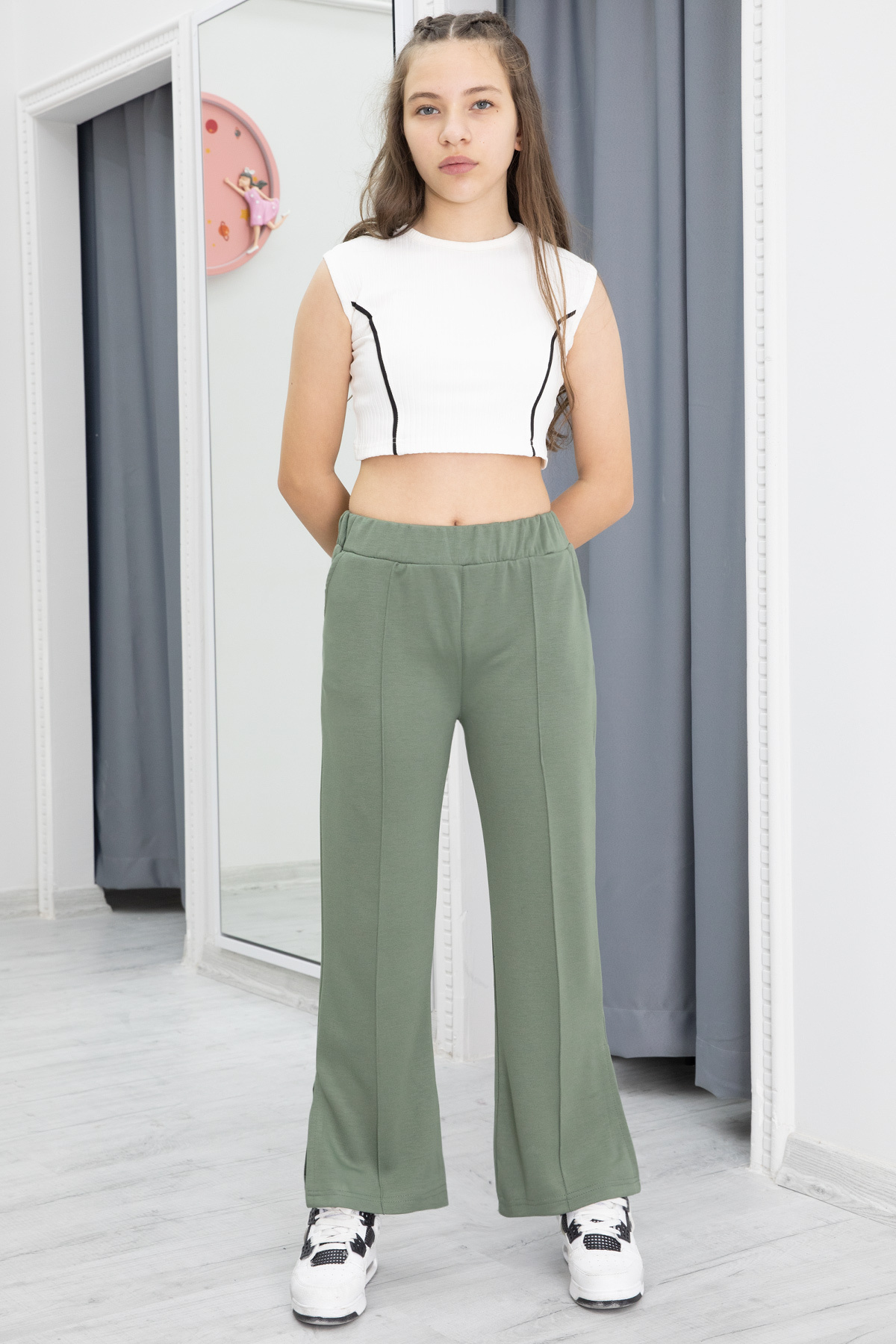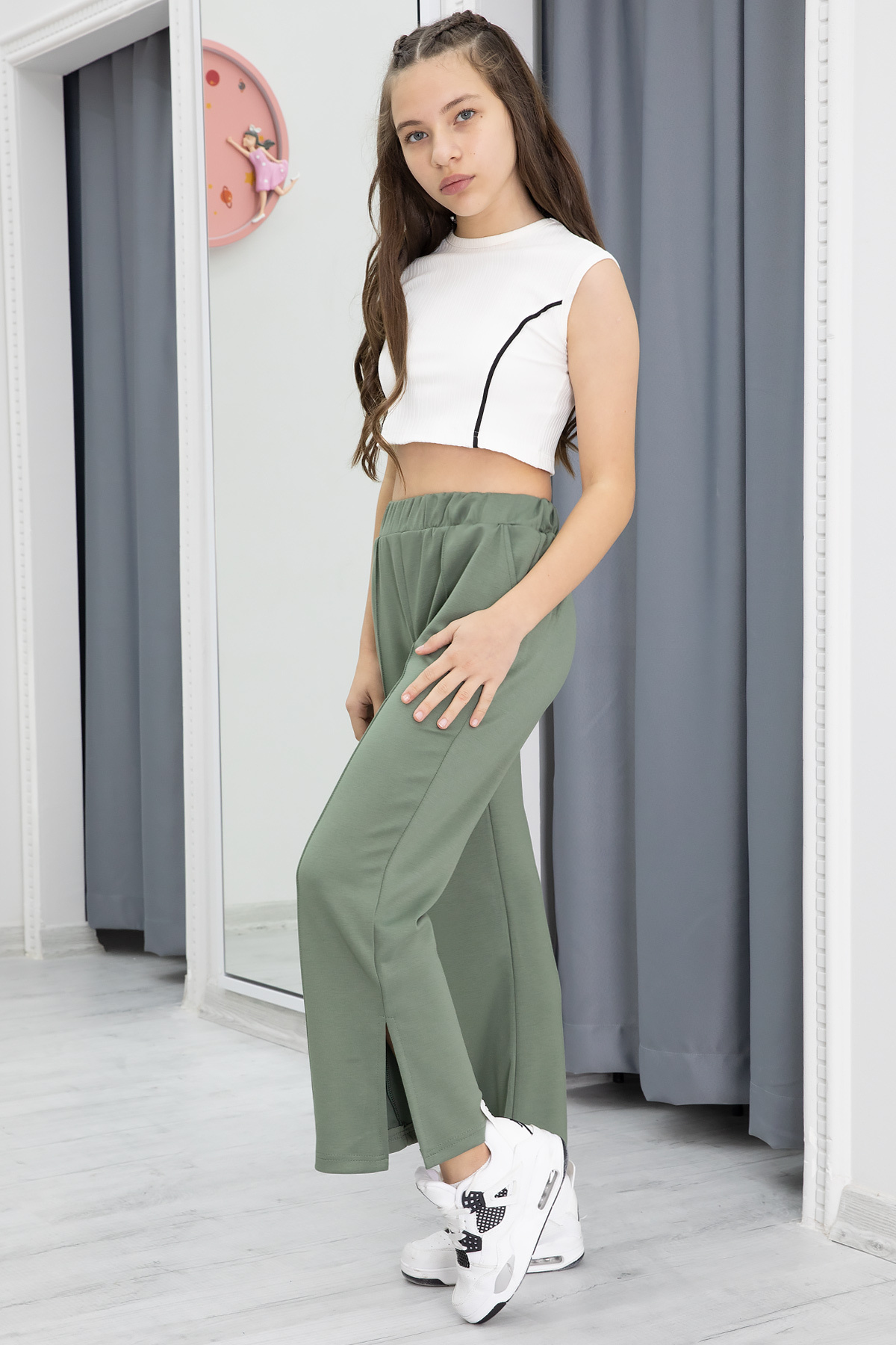 Haki Geniş Paça Yırtmaçlı Kız Çocuk Pantolon 20288 Haki Geniş Paça Yırtmaçlı Kız Çocuk Pantolon 20288 GRPCM00020283 15-16 Yaş