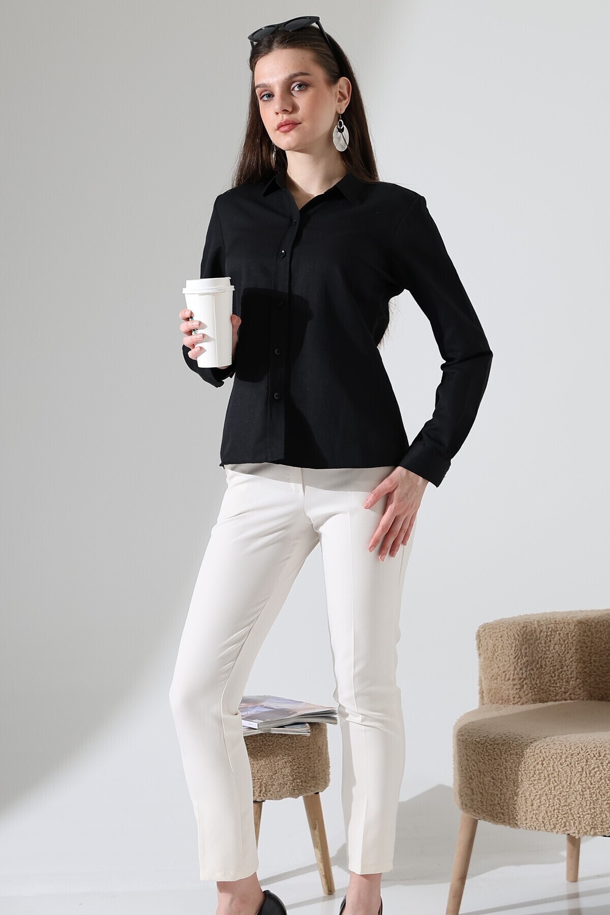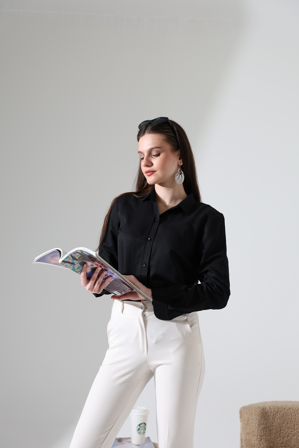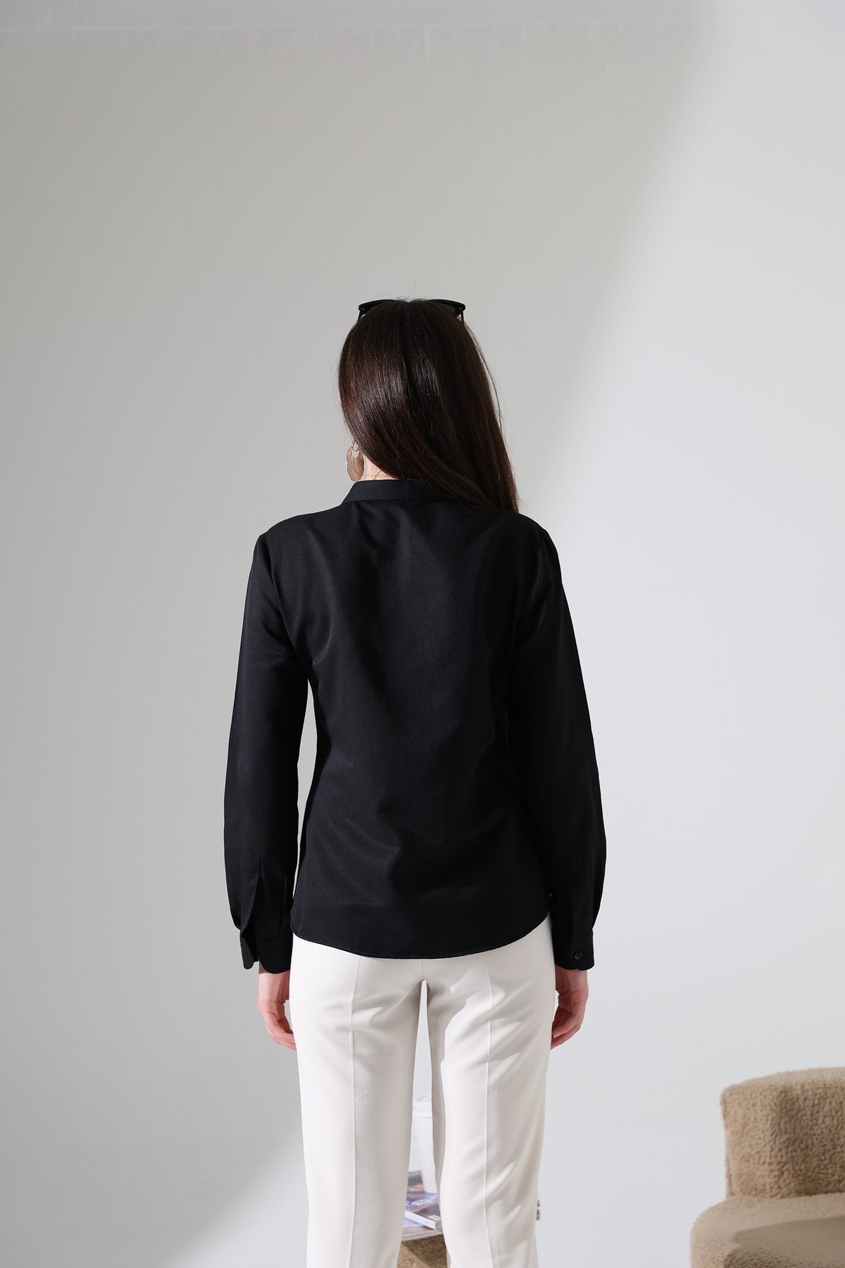 Şamre Kumaş Siyah Renk Slim Fit Klasik Kadın Gömlek Şamre Kumaş Siyah Renk Slim Fit Klasik Kadın Gömlek 2507-01 2XL