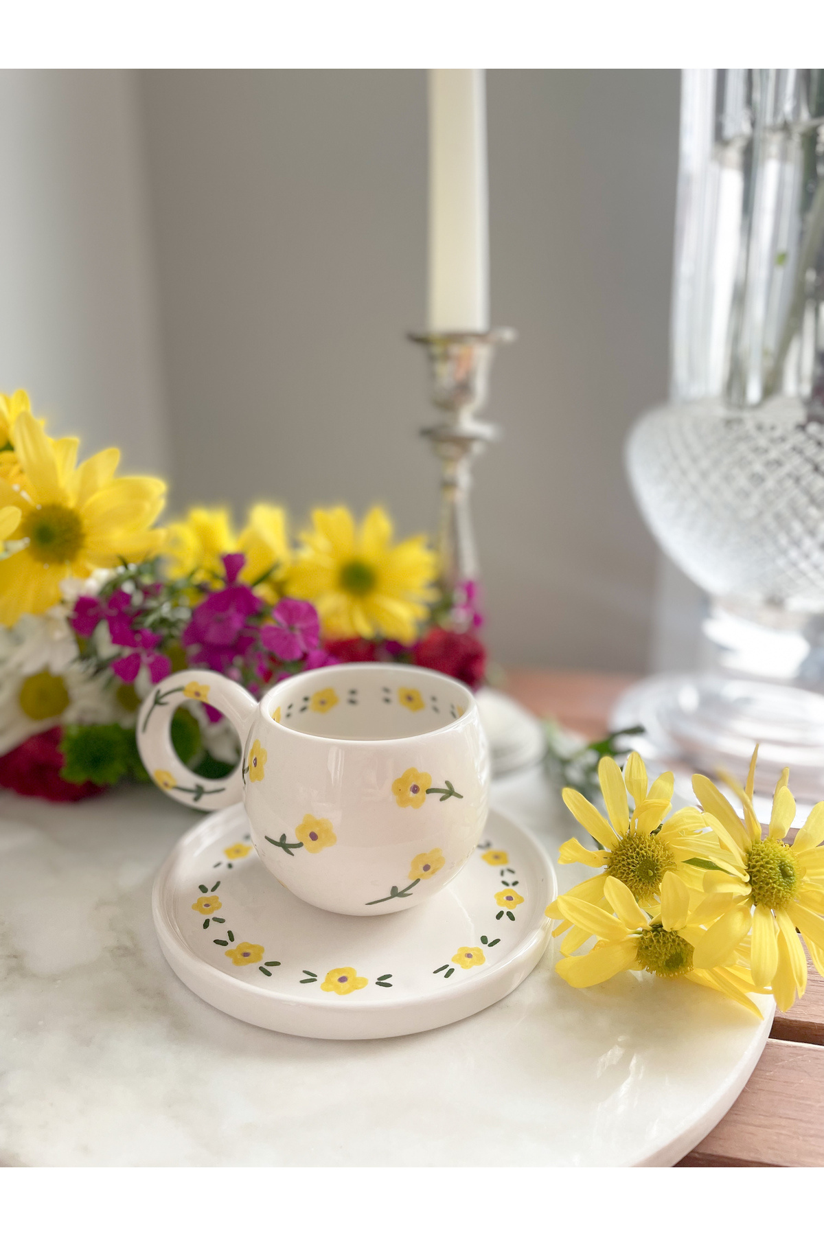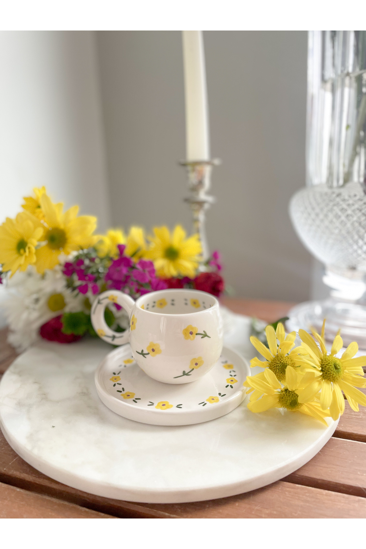 Vintage Sarı Çicekli El Yapımı Seramik Double Türk Kahvesi Fincanı Vintage Sarı Çicekli El Yapımı Seramik Double Türk Kahvesi Fincanı mugbaharpembe تک سایز