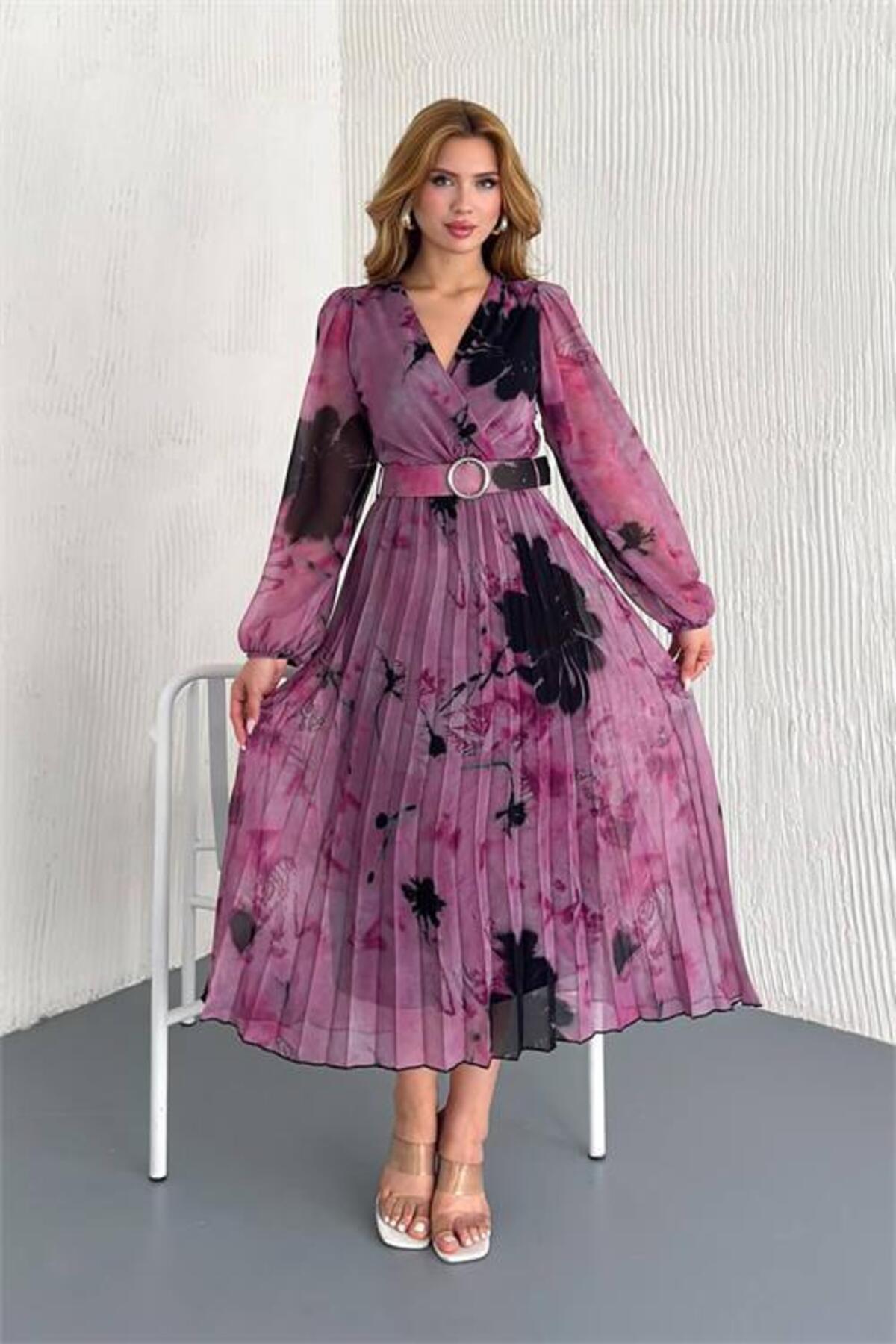 kadın astarlı midi boy şifon elbise DPK20301 kadın astarlı midi boy şifon elbise DPK20301 DPNBK20301 42