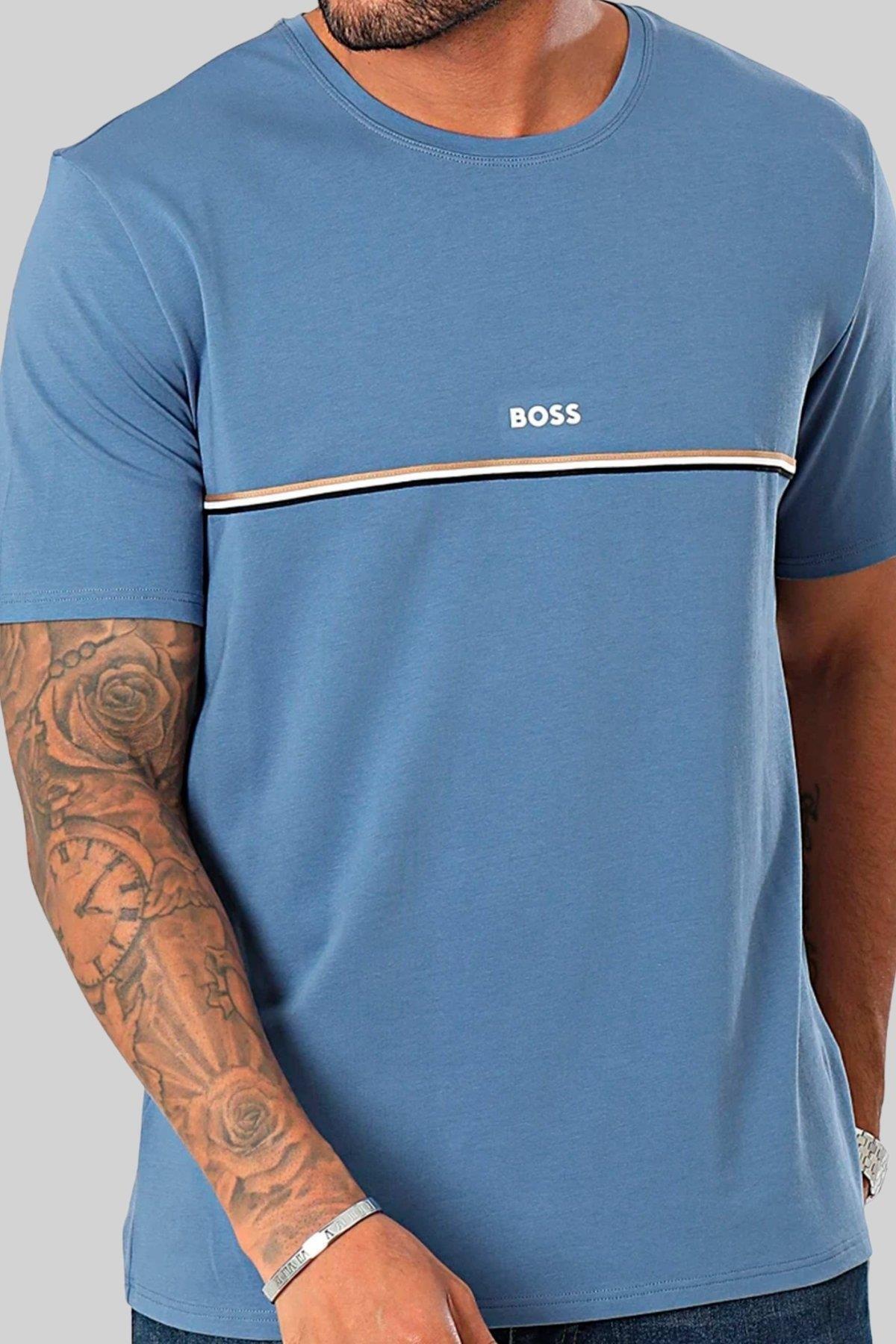 Şeritli Streç Regular Fit Erkek T-shirt Mavi Şeritli Streç Regular Fit Erkek T-shirt Mavi 50502864-478 2XL