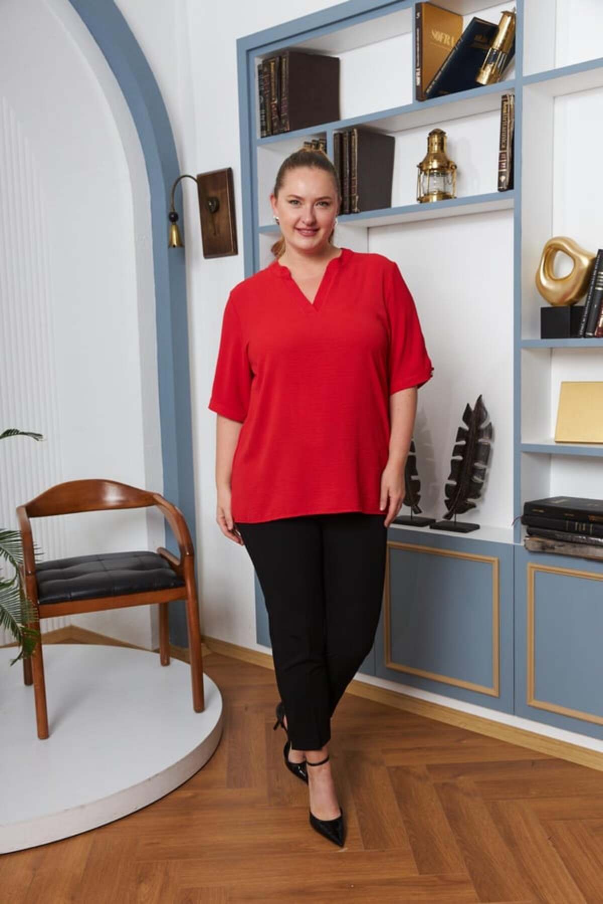Kadın RMG Yazlık Yaka ve Kol Detaylı Büyük Beden Bluz 06622 Kadın RMG Yazlık Yaka ve Kol Detaylı Büyük Beden Bluz 06622 RMG Yazlık Büyük Beden Bluz 06622 50