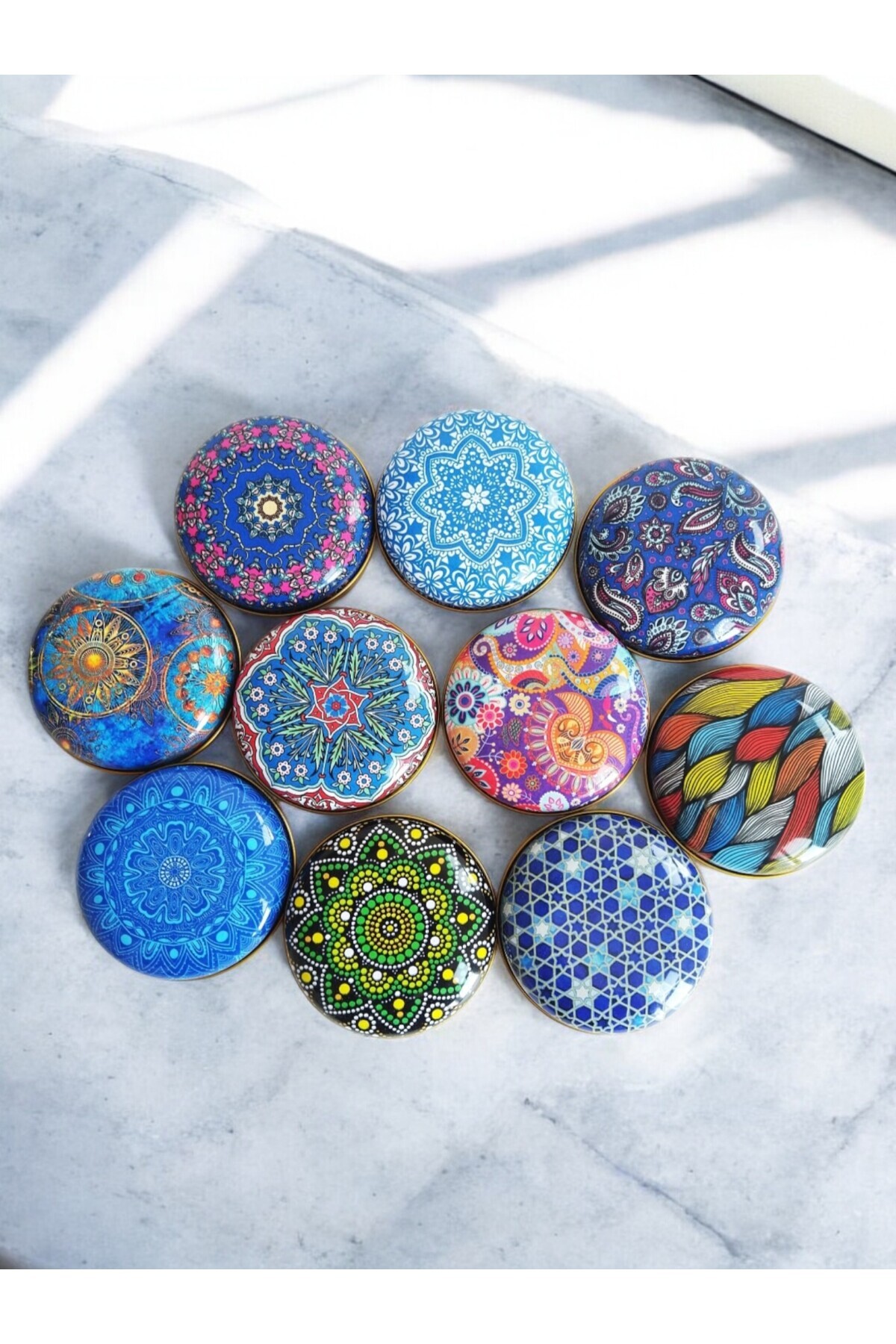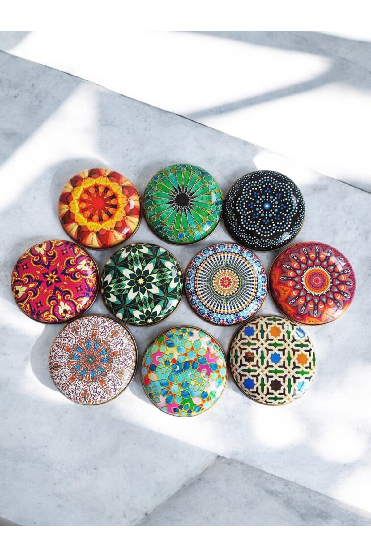 Mandala Temalı Metal Kutu - Hediyelik ve Mum Hazırlama Kutusu 7,3x3cm 10 Adet Mandala Temalı Metal Kutu - Hediyelik ve Mum Hazırlama Kutusu 7,3x3cm 10 Adet MNM10K تک سایز