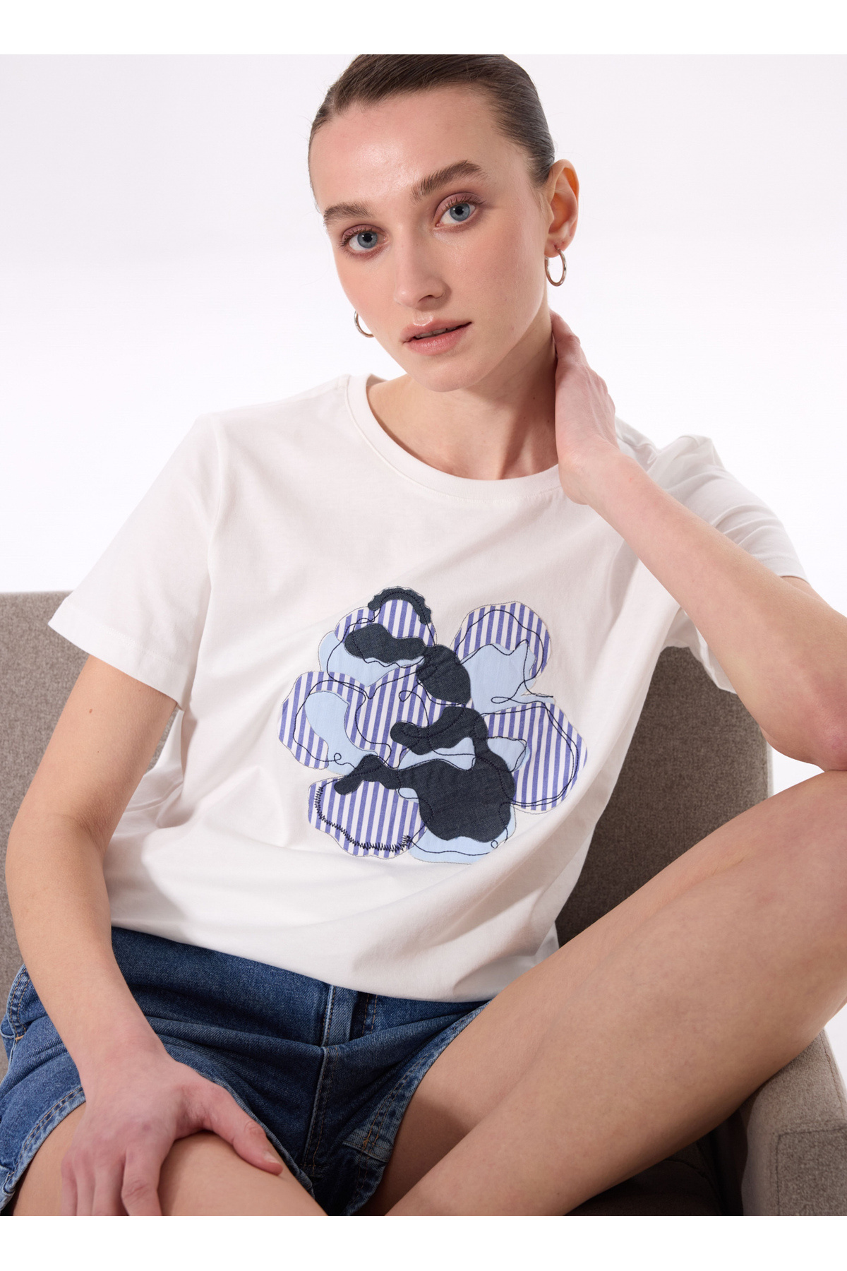 Bisiklet Yaka Baskılı Beyaz Kadın T-Shirt F5SL-TST0425 Bisiklet Yaka Baskılı Beyaz Kadın T-Shirt F5SL-TST0425 5003224265 XL