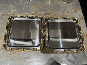 2 ADET Sunum Tepsisi & Kahve & Çay Tepsisi- Gümüş Tepsi Döküm Gold Gül Çerçeveli 2 ADET Sunum Tepsisi & Kahve & Çay Tepsisi- Gümüş Tepsi Döküm Gold Gül Çerçeveli TYC2931DE6E1AC53F1 تک سایز