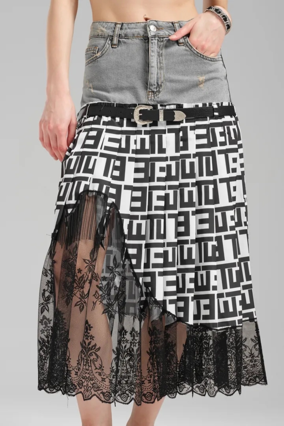 Kadın Yanları Şeritli ve Beli Lastikli Tasarım Uzun Etek Kadın Yanları Şeritli ve Beli Lastikli Tasarım Uzun Etek TW3-1111 L