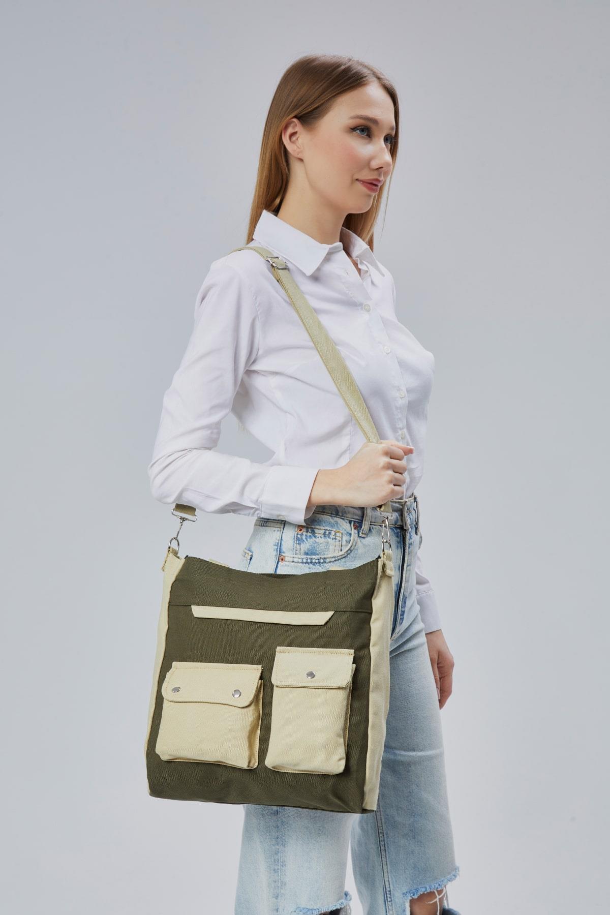 Kanvas Ön Cepleri Çıtlı Çanta (Koyu Yeşil - Bej) Kanvas Ön Cepleri Çıtlı Çanta (Koyu Yeşil - Bej) 2356 تک سایز