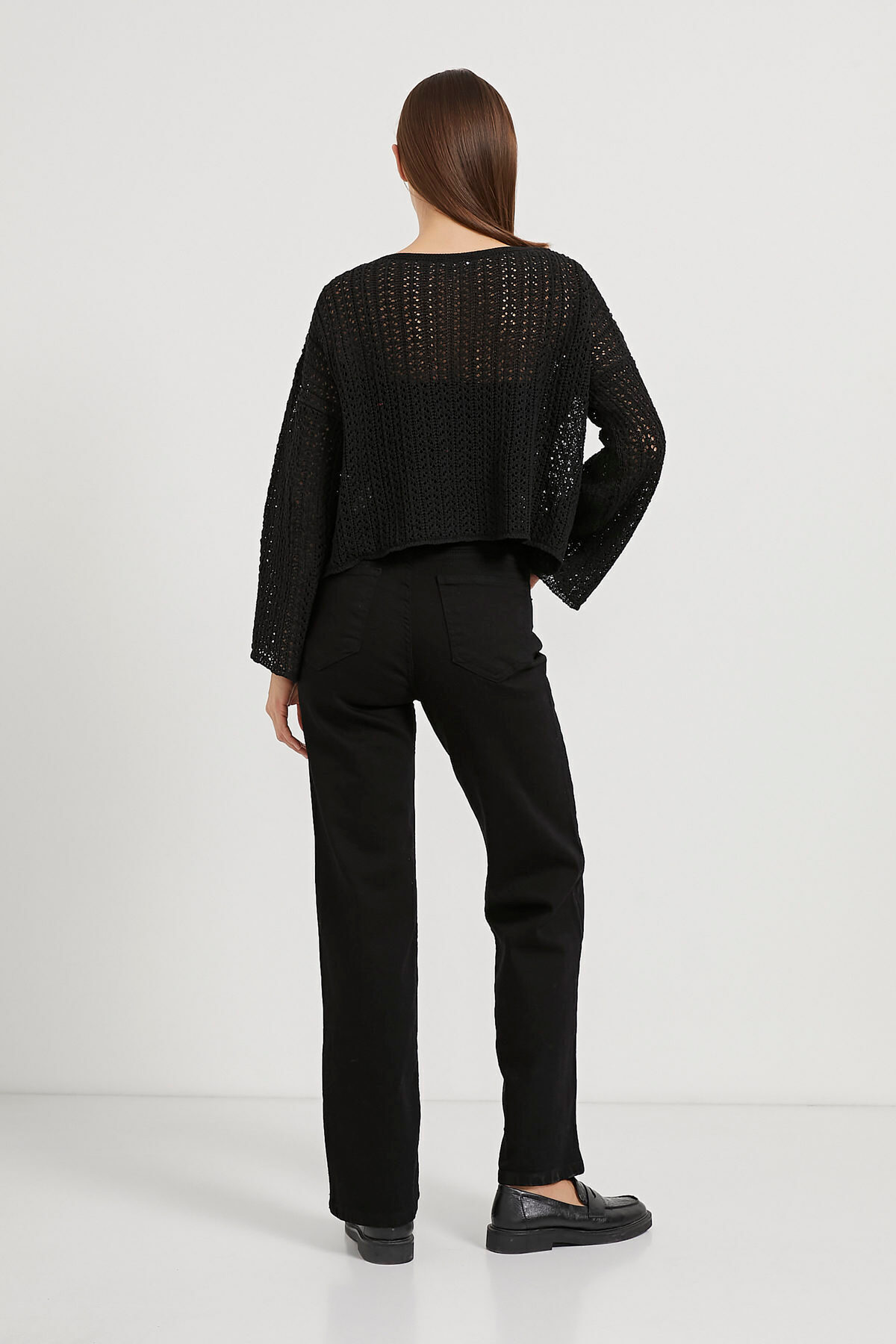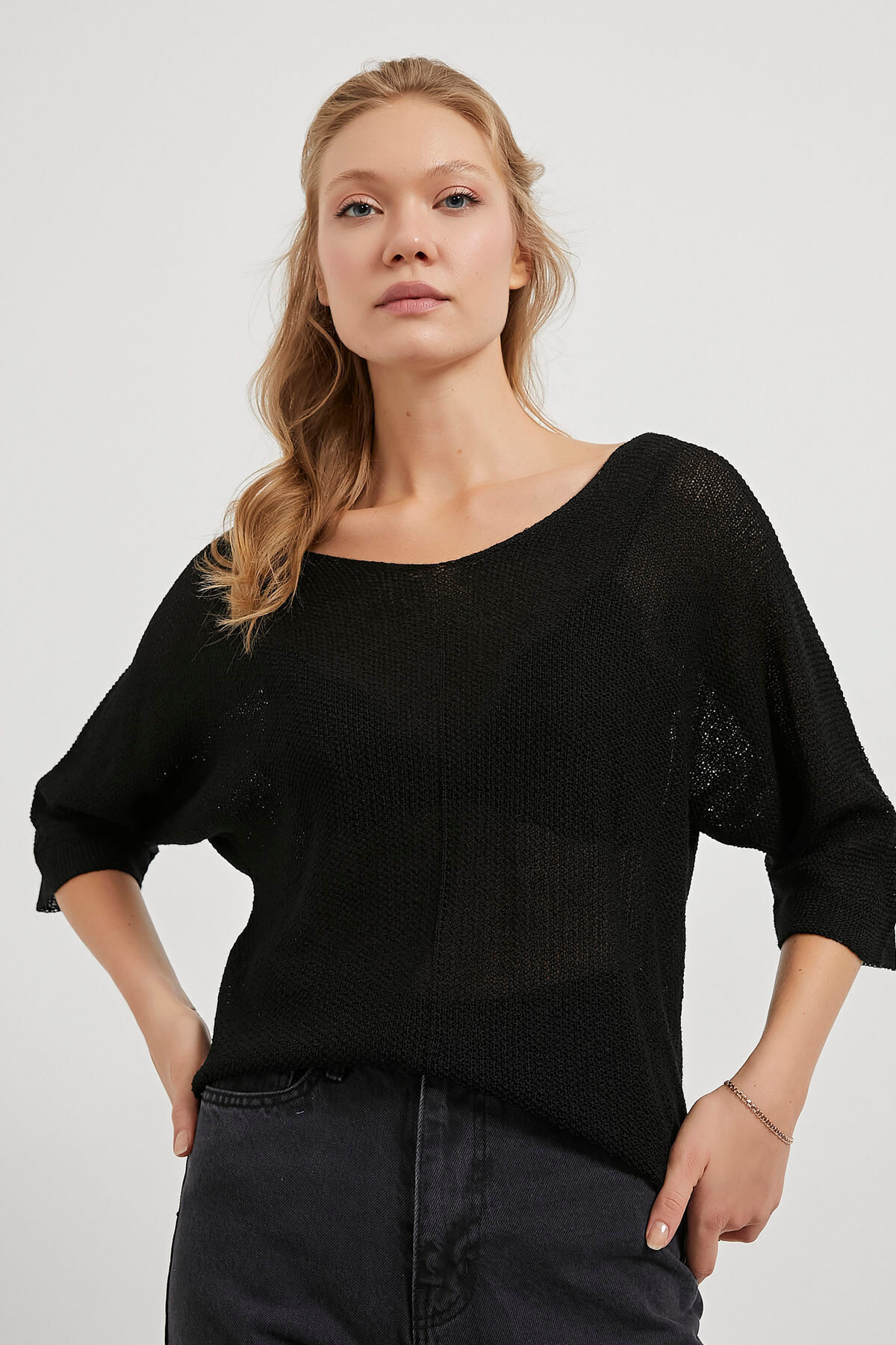 Kadın Ajurlu Uzun Kollu Salaş Siyah Triko Bluz Kadın Ajurlu Uzun Kollu Salaş Siyah Triko Bluz 645-5YB2515BLZ Standart