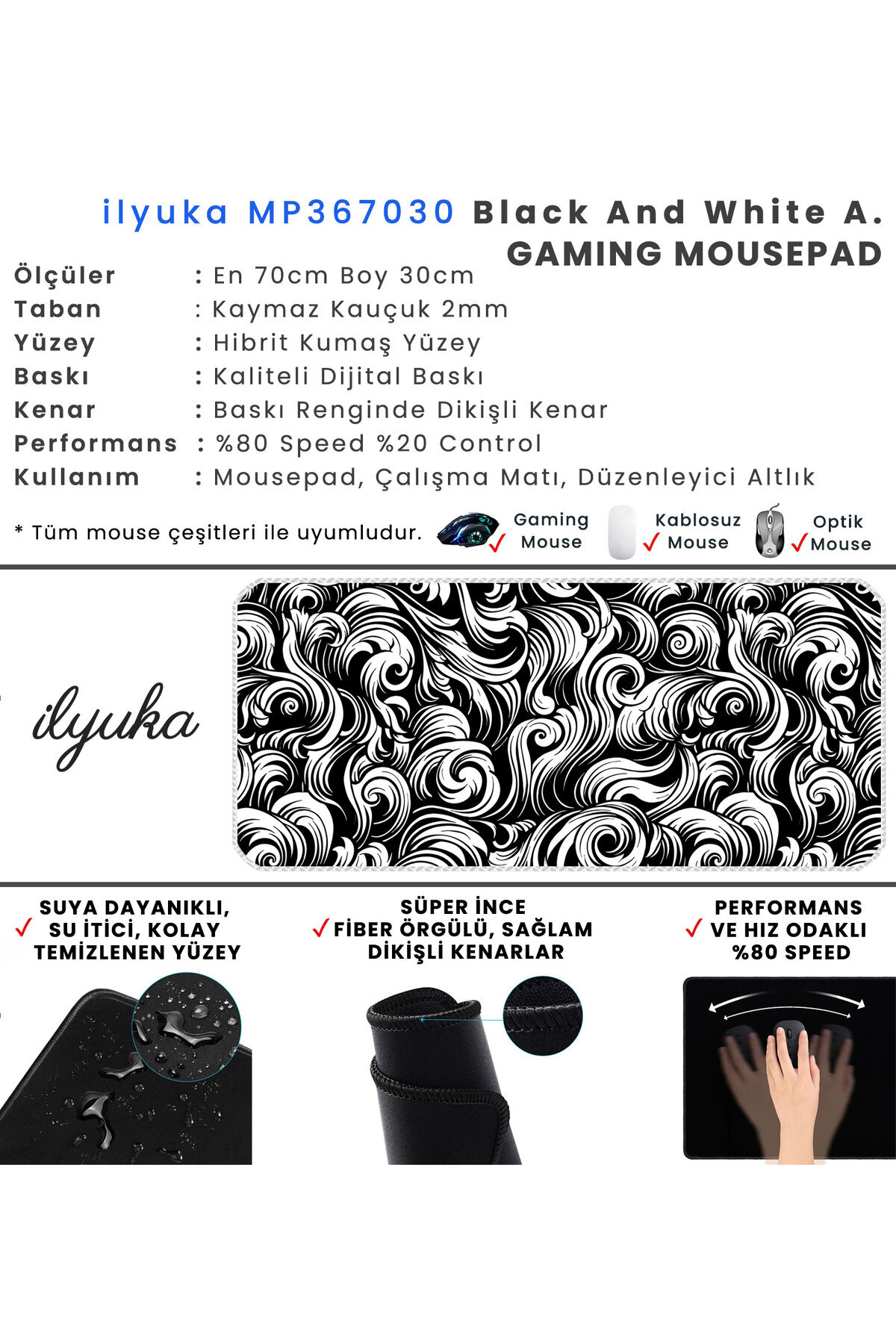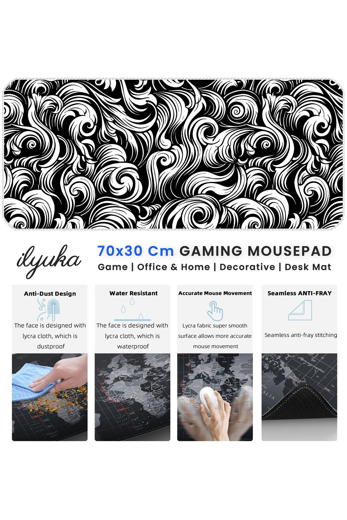 Mouse Pad 70x30 cm ilyuka MP367030 Büyük Boy XL Gaming Mousepad Black And White Abstract Patterns Mouse Pad 70x30 cm ilyuka MP367030 Büyük Boy XL Gaming Mousepad Black And White Abstract Patterns تک سایز